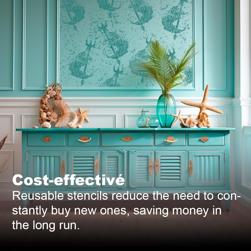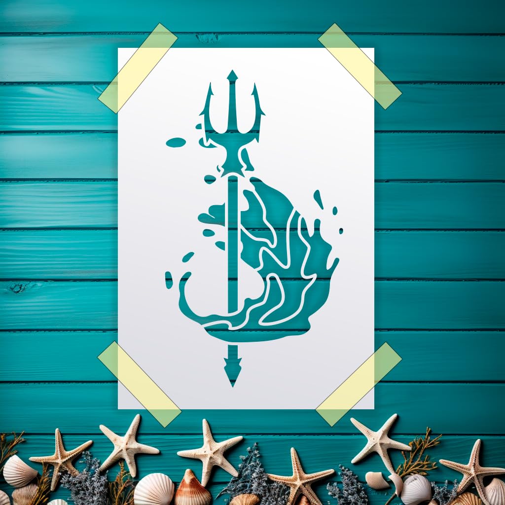 Professional Ocean Trident Stencil – Reusable Sea Theme Mylar Template for Painting on Wood, Canvas, Walls, and DIY Coastal Art Projects stencil for creating beautiful designs on various surfaces. Perfect for painting on wood, fabric, walls, and other materials. Reusable and durable for multiple projects.