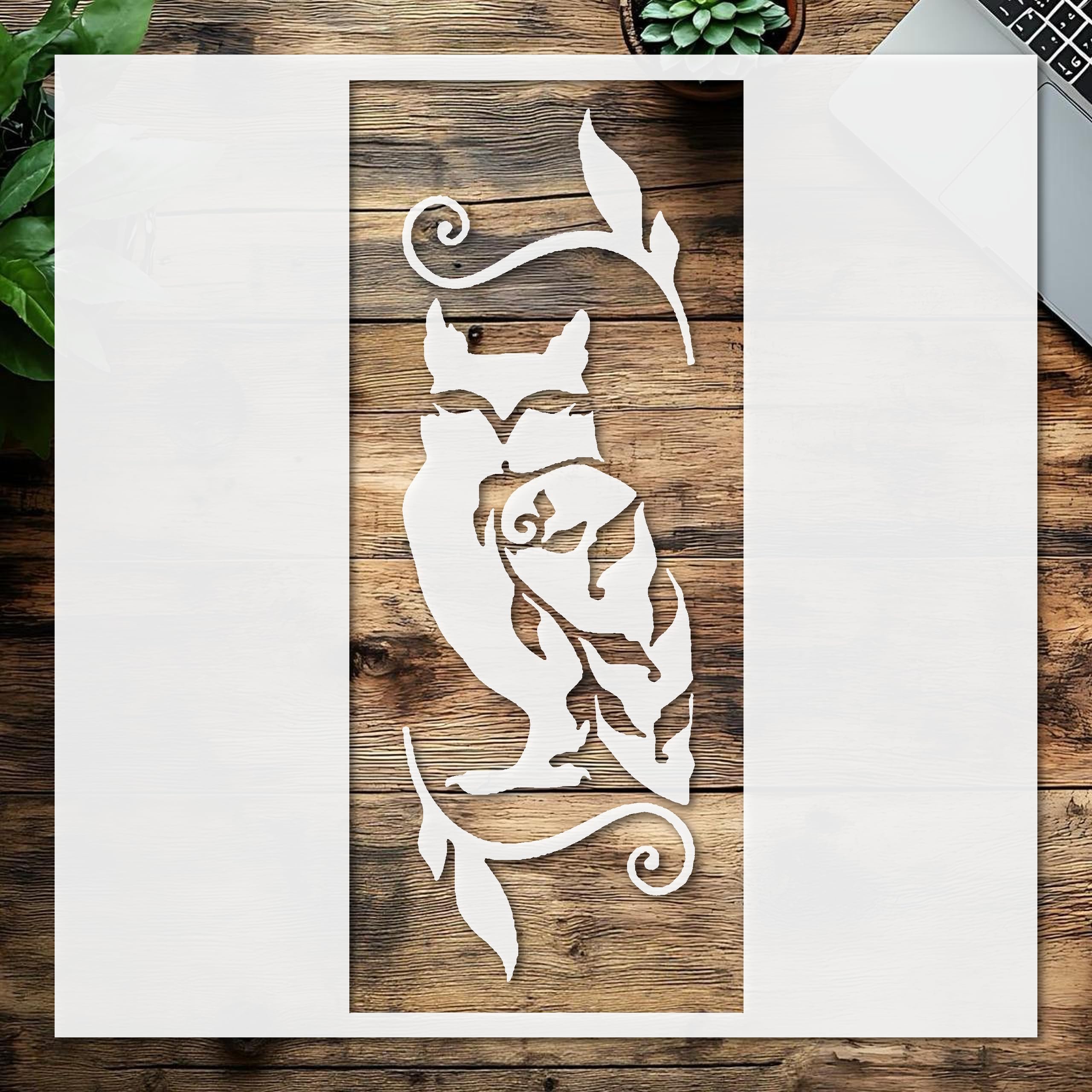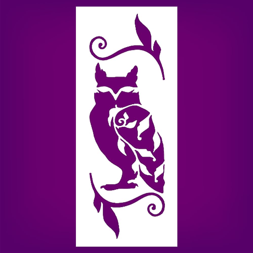 Professional Owl on Branch Stencil – Reusable Vertical Wildlife Template with Swirl Leaf Design for Painting, DIY Crafts, Rustic Wall Art, Journals – Stencil Sheet stencil for creating beautiful designs on various surfaces. Perfect for painting on wood, fabric, walls, and other materials. Reusable and durable for multiple projects.