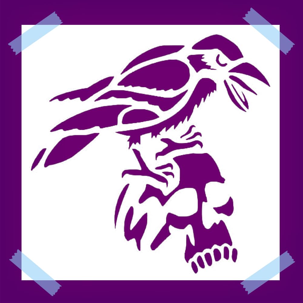• Versatile Stencil: This reusable Mylar plastic stencil features a striking raven on a skull design, perfect for painting on various surfaces.