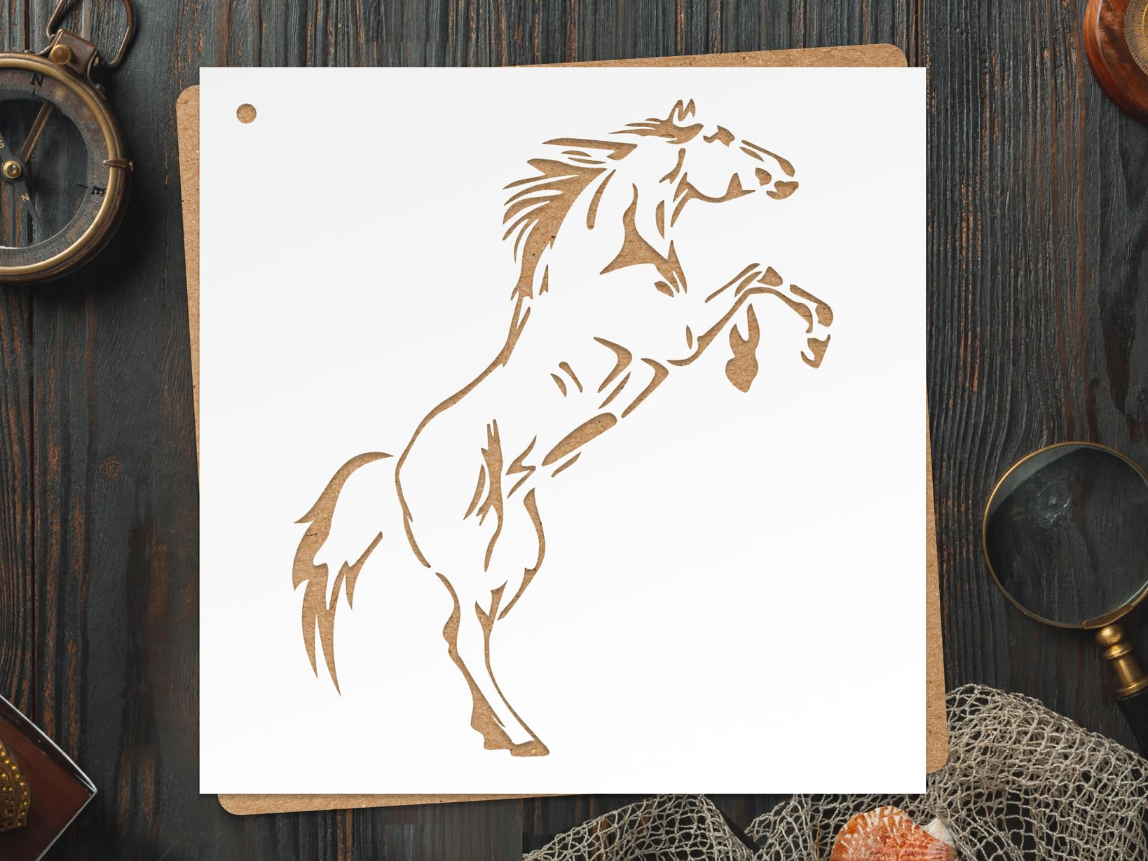 Professional Rearing Horse Stencil – Reusable Equestrian Template for DIY Rustic Wall Art, Farmhouse Signs, Western Decor & Country Crafts stencil for creating beautiful designs on various surfaces. Perfect for painting on wood, fabric, walls, and other materials. Reusable and durable for multiple projects.