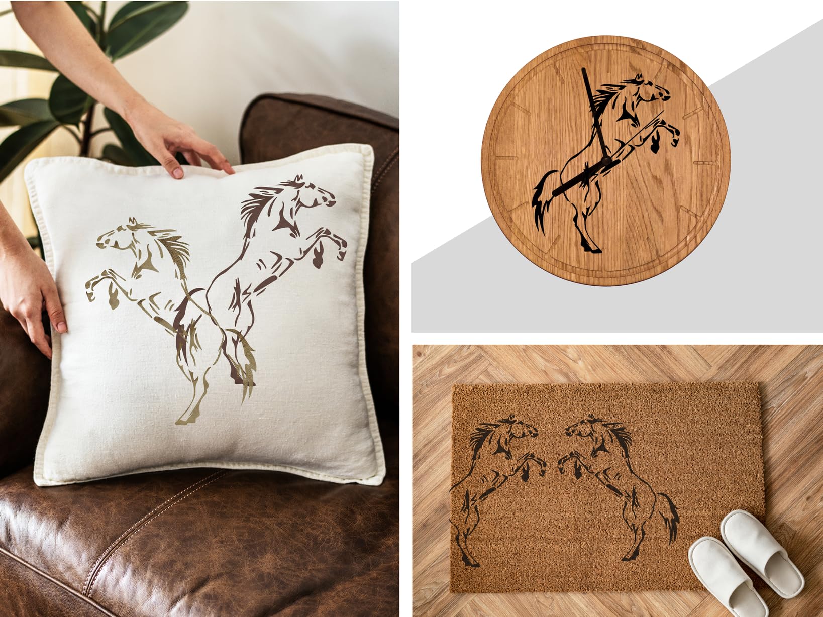 • Enhance Any Surface: Whether you’re painting on wood, canvases, walls, or fabrics, our horse stencils adapt to any medium, allowing you to customize your home decor, clothing, or art projects.