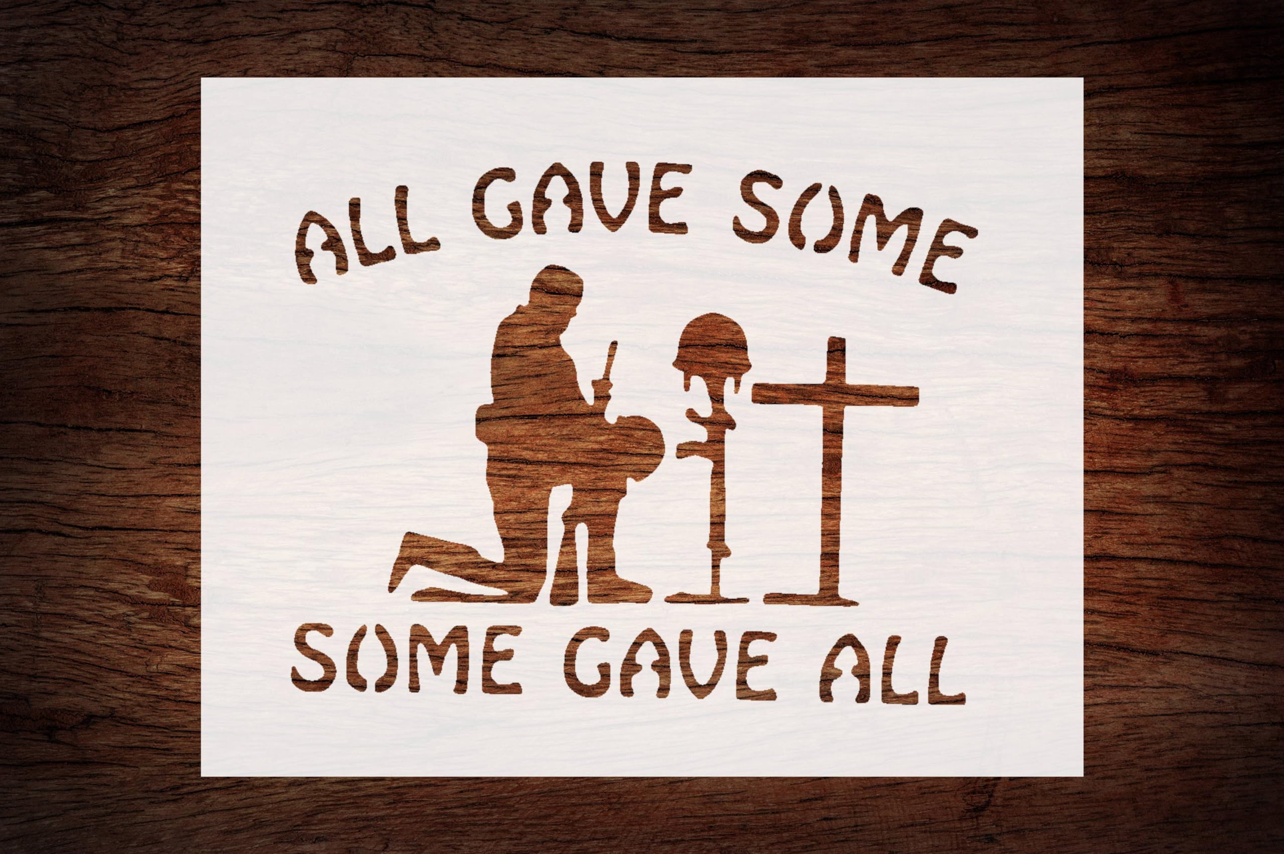 Our “All Gave Some, Some Gave All” Soldier Stencil is more than just a crafting tool; it’s an invitation to reflect, remember, and honor the brave individuals who have made sacrifices for freedom and security. Ideal for DIY enthusiasts, families of service members, and anyone looking to express their gratitude and respect through art, let this stencil inspire your projects with a message of courage and sacrifice.