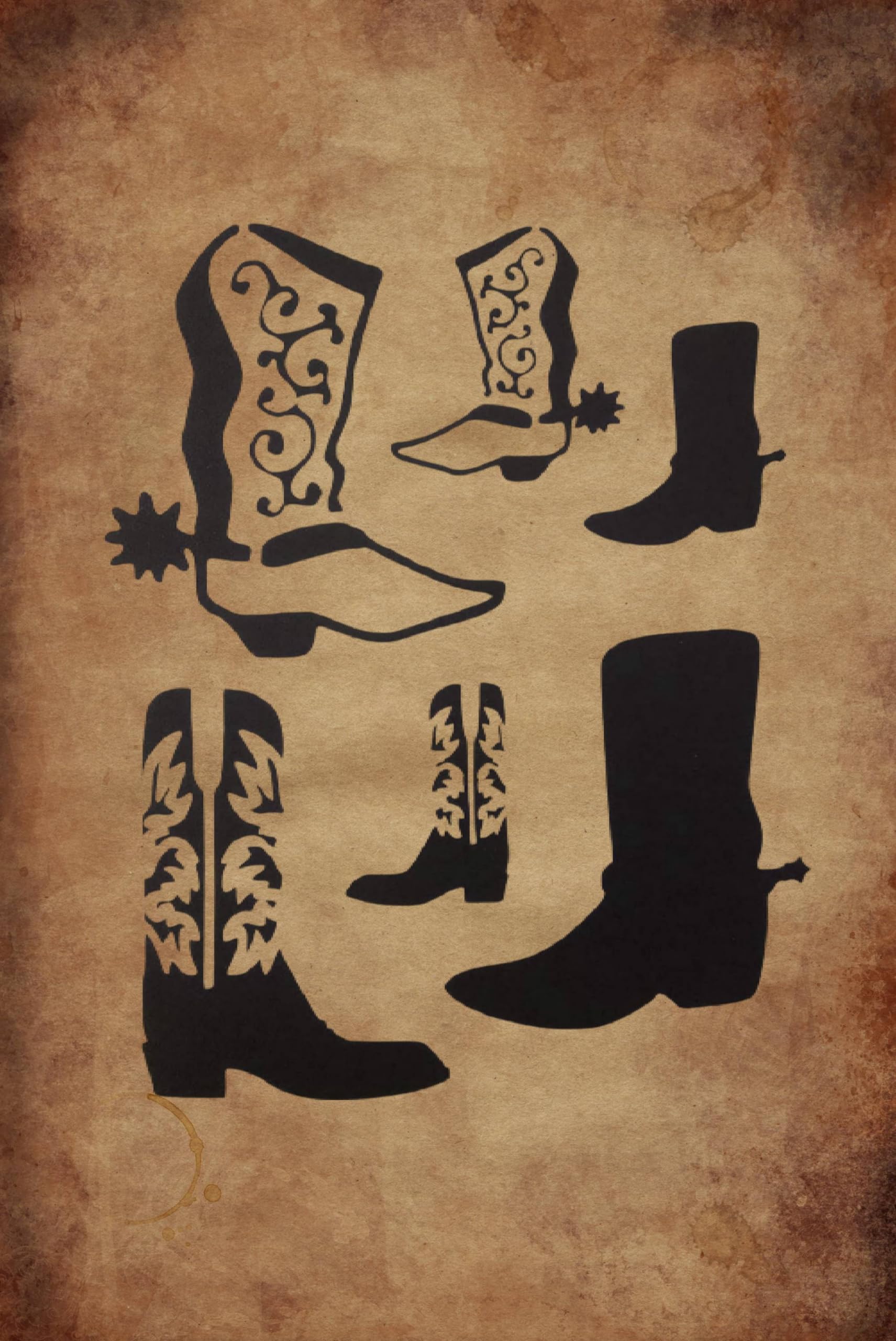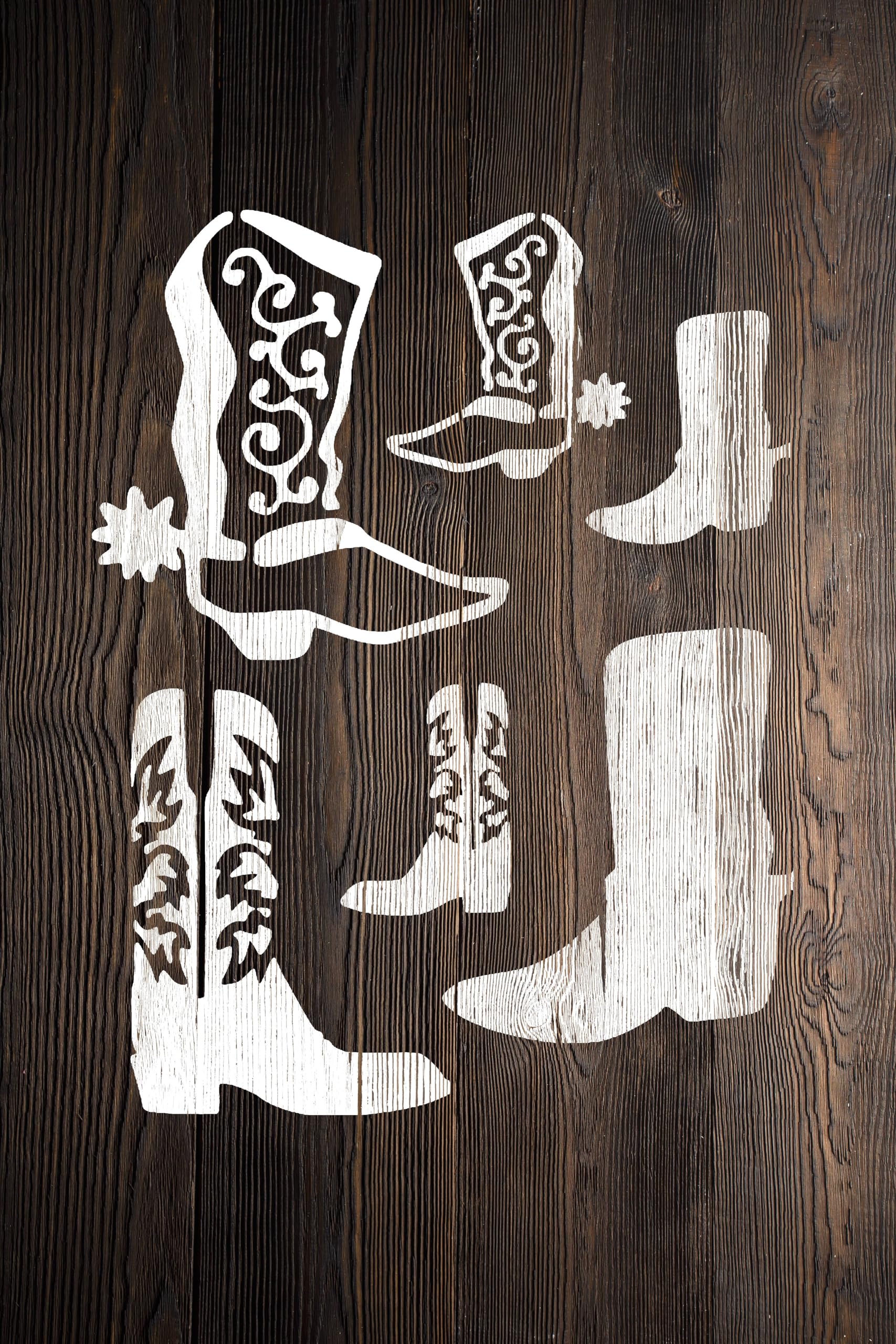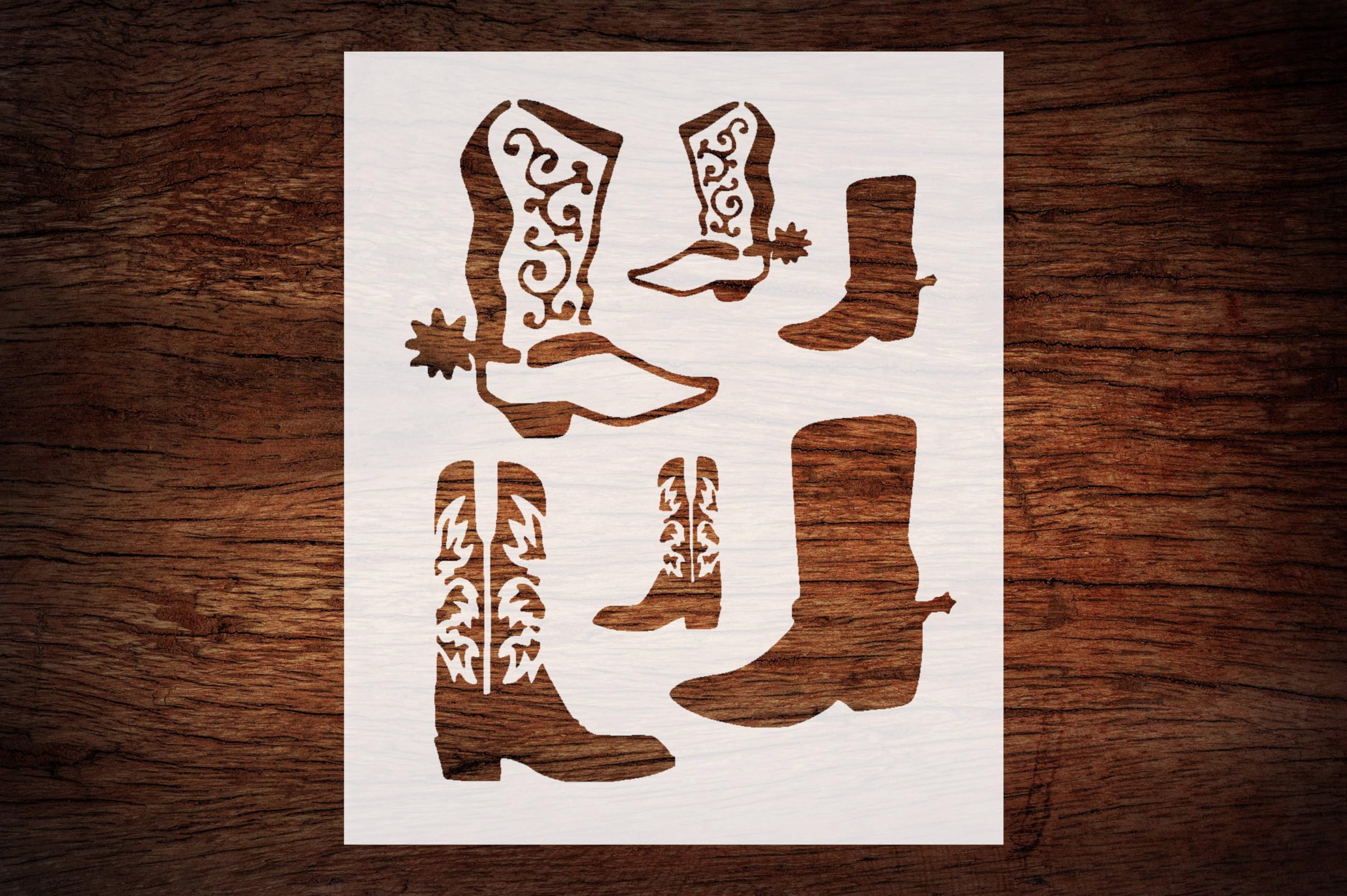 Professional Reusable Cowboy Boots Stencil – Custom, Durable Western Country Design for Crafts stencil for creating beautiful designs on various surfaces. Perfect for painting on wood, fabric, walls, and other materials. Reusable and durable for multiple projects.