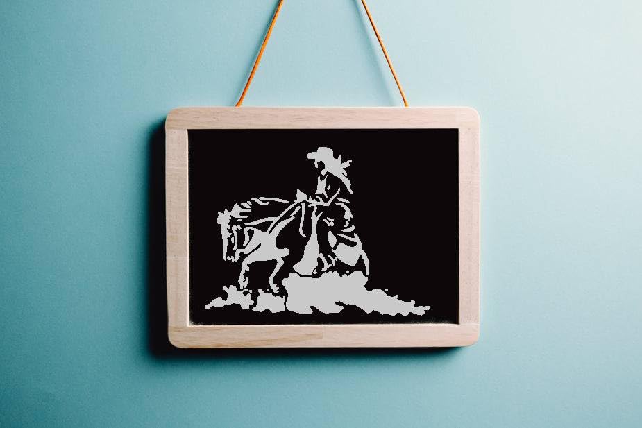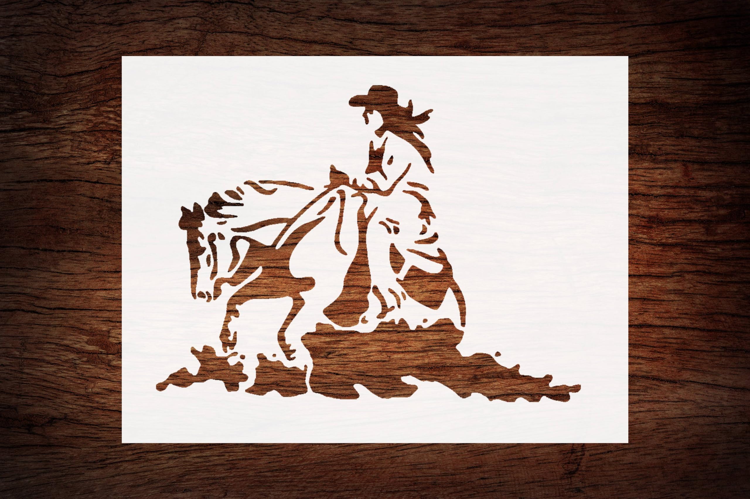 Professional Reusable Cowboy & Cowgirl Riding Horse Stencil – Custom, Durable Design for Western Crafts stencil for creating beautiful designs on various surfaces. Perfect for painting on wood, fabric, walls, and other materials. Reusable and durable for multiple projects.