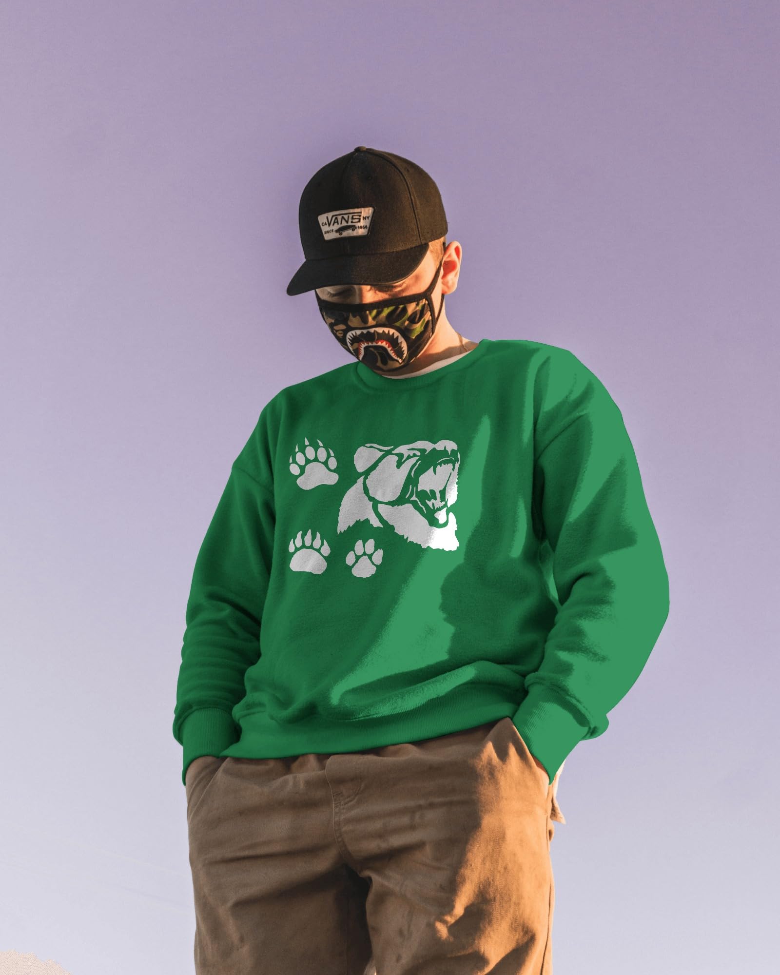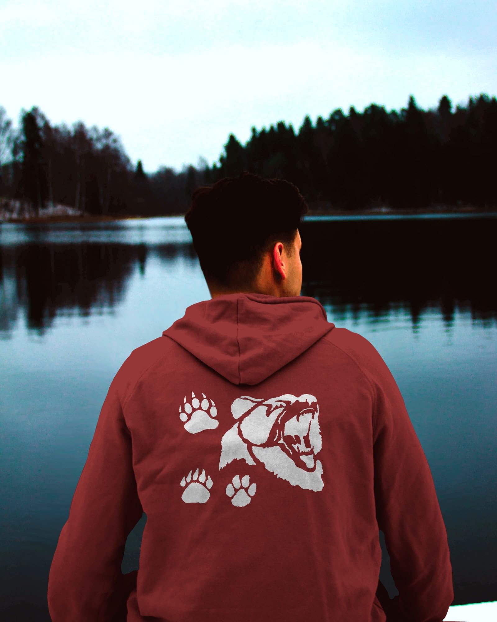 • Intricate Grizzly Bear Face and Paw Print Design captures the wild essence of nature.