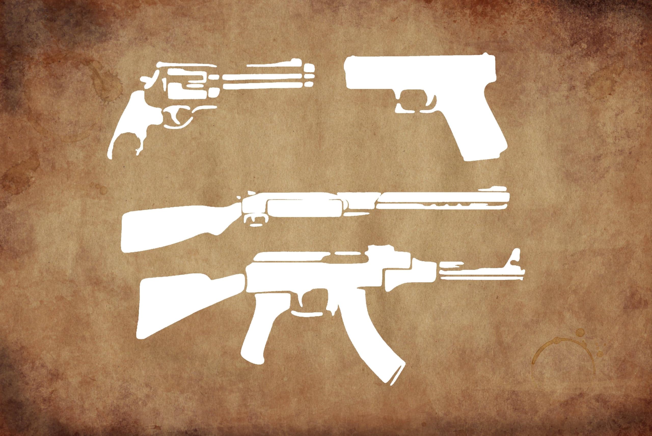 • Comprehensive Guns Design featuring a range of guns including pistols, rifles, and shotguns.