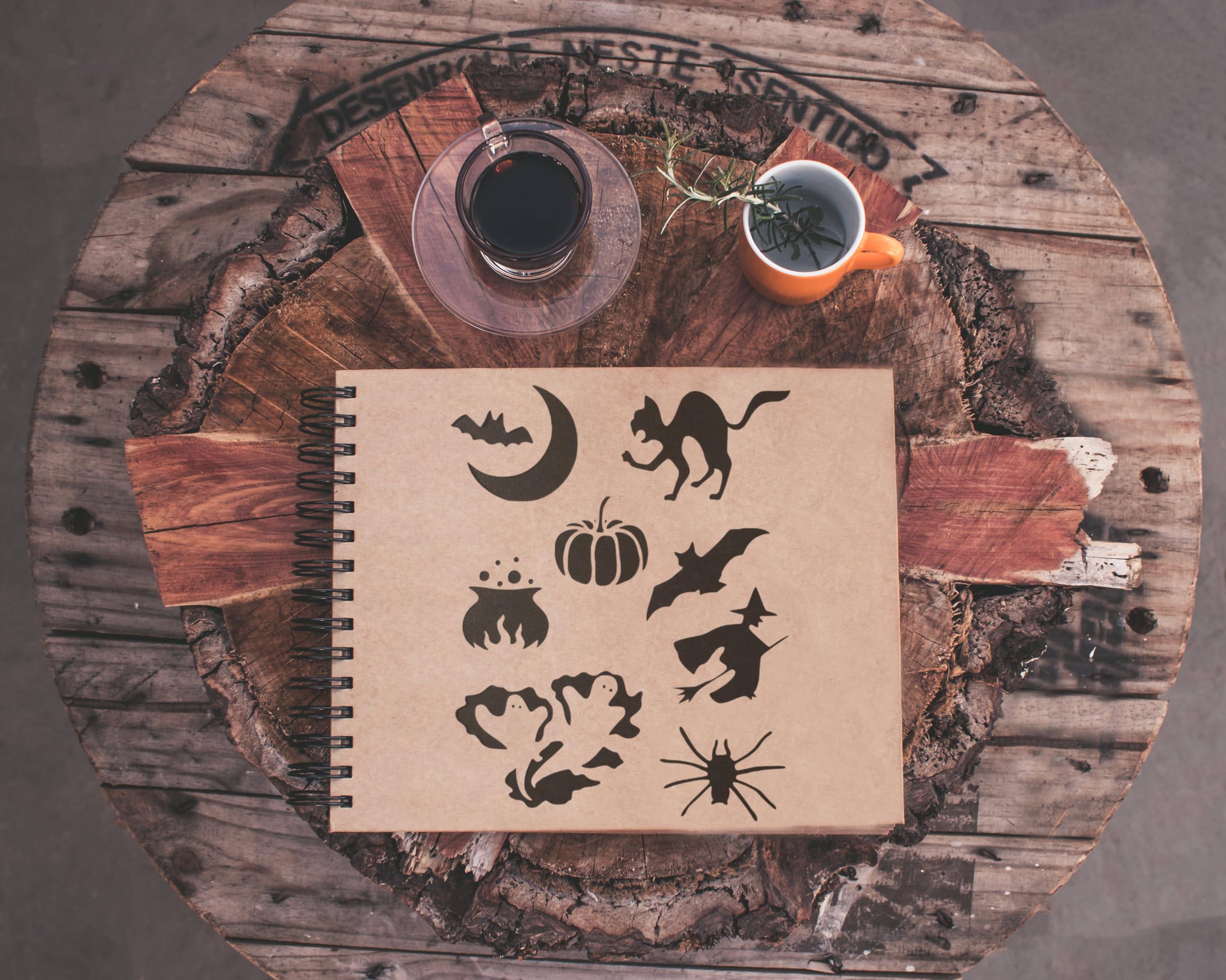 Professional Reusable Halloween Theme Stencil – Bat, Cat, Pumpkin, Witch Design for Spooky Crafts stencil for creating beautiful designs on various surfaces. Perfect for painting on wood, fabric, walls, and other materials. Reusable and durable for multiple projects.