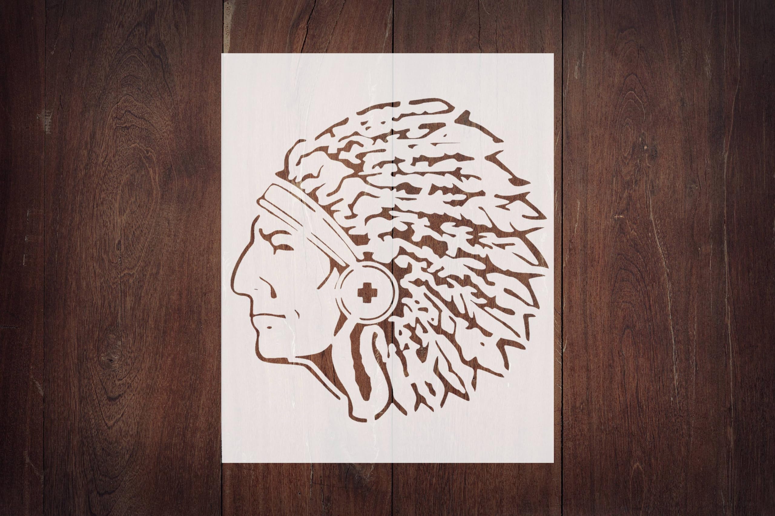 Professional Reusable Indian Chief Head Stencil – Custom, Durable Template for Art Projects stencil for creating beautiful designs on various surfaces. Perfect for painting on wood, fabric, walls, and other materials. Reusable and durable for multiple projects.