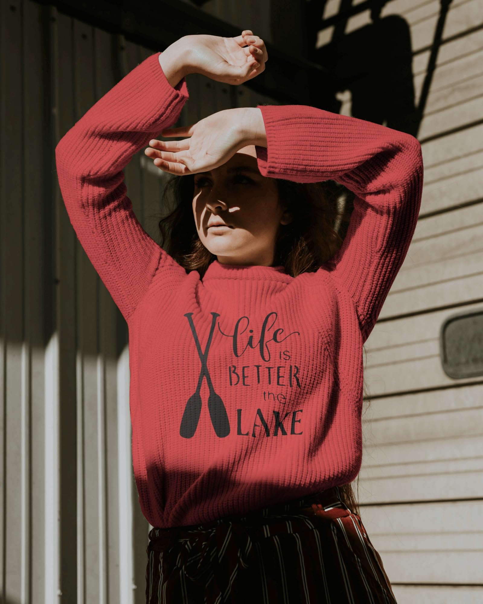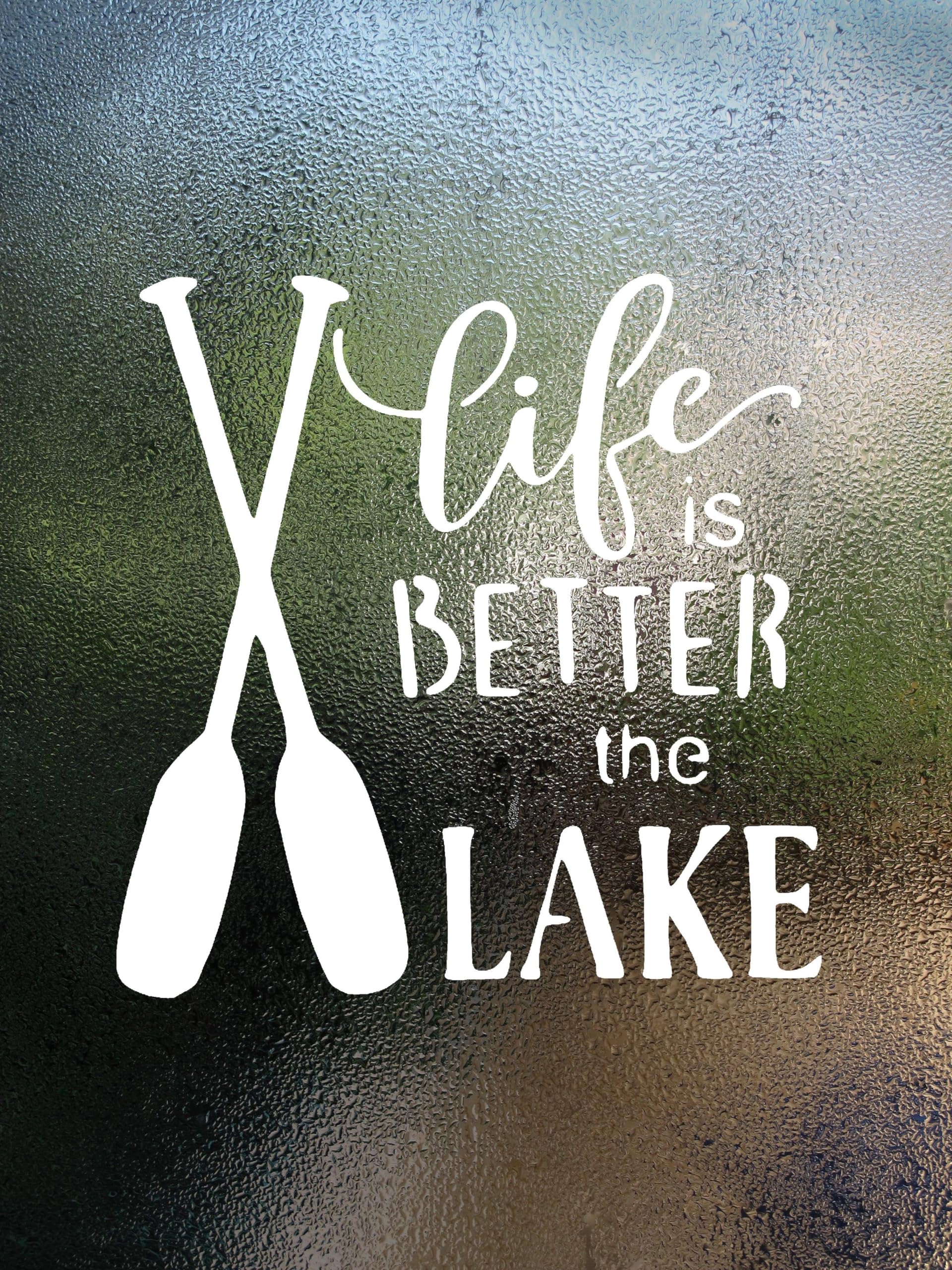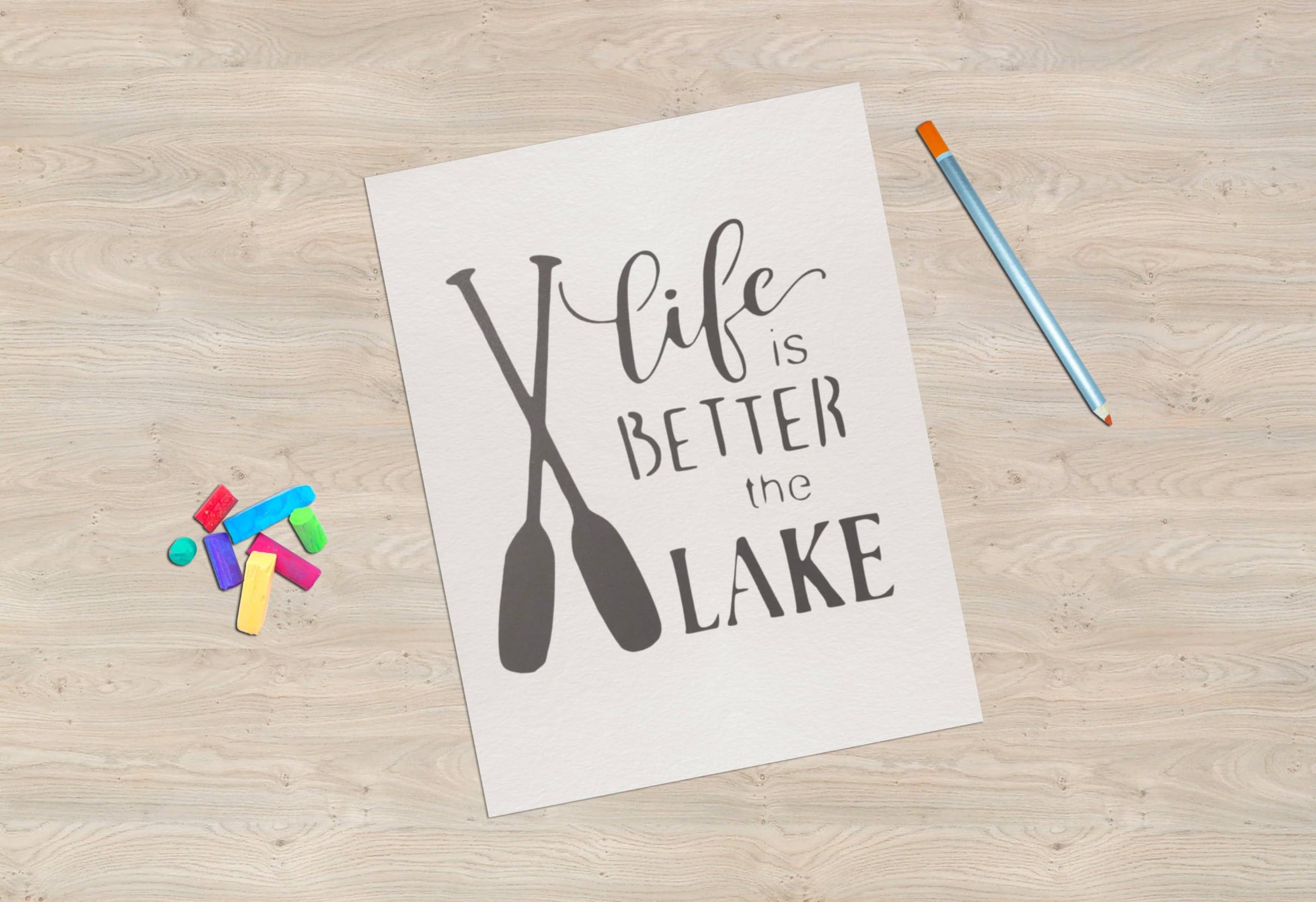 • Inspirational “Life is Better at The Lake” with Oars Design captures the essence of lakeside living.
