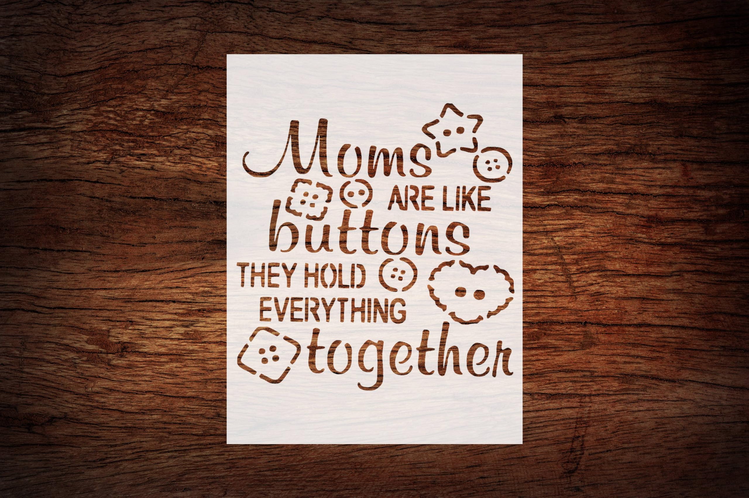 Professional Reusable Moms’ Buttons Hold Together Stencil – Heartwarming Mother’s Day Design for Crafts stencil for creating beautiful designs on various surfaces. Perfect for painting on wood, fabric, walls, and other materials. Reusable and durable for multiple projects.