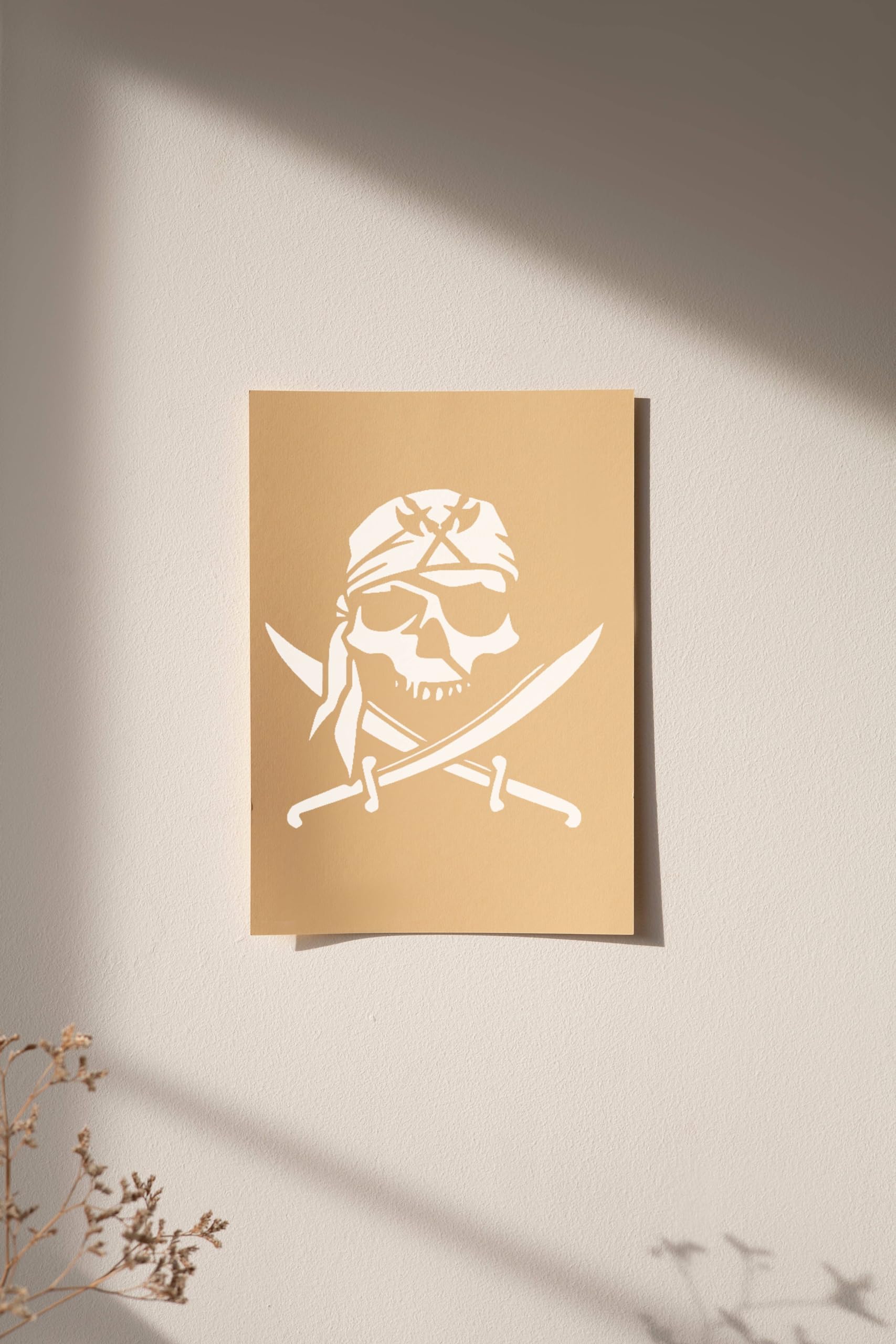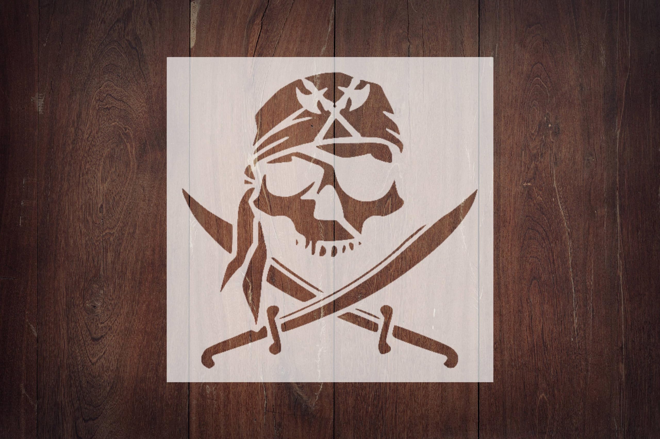 Professional Reusable Skull Pirate Stencil – Custom Adventurous Design for Themed Crafts stencil for creating beautiful designs on various surfaces. Perfect for painting on wood, fabric, walls, and other materials. Reusable and durable for multiple projects.