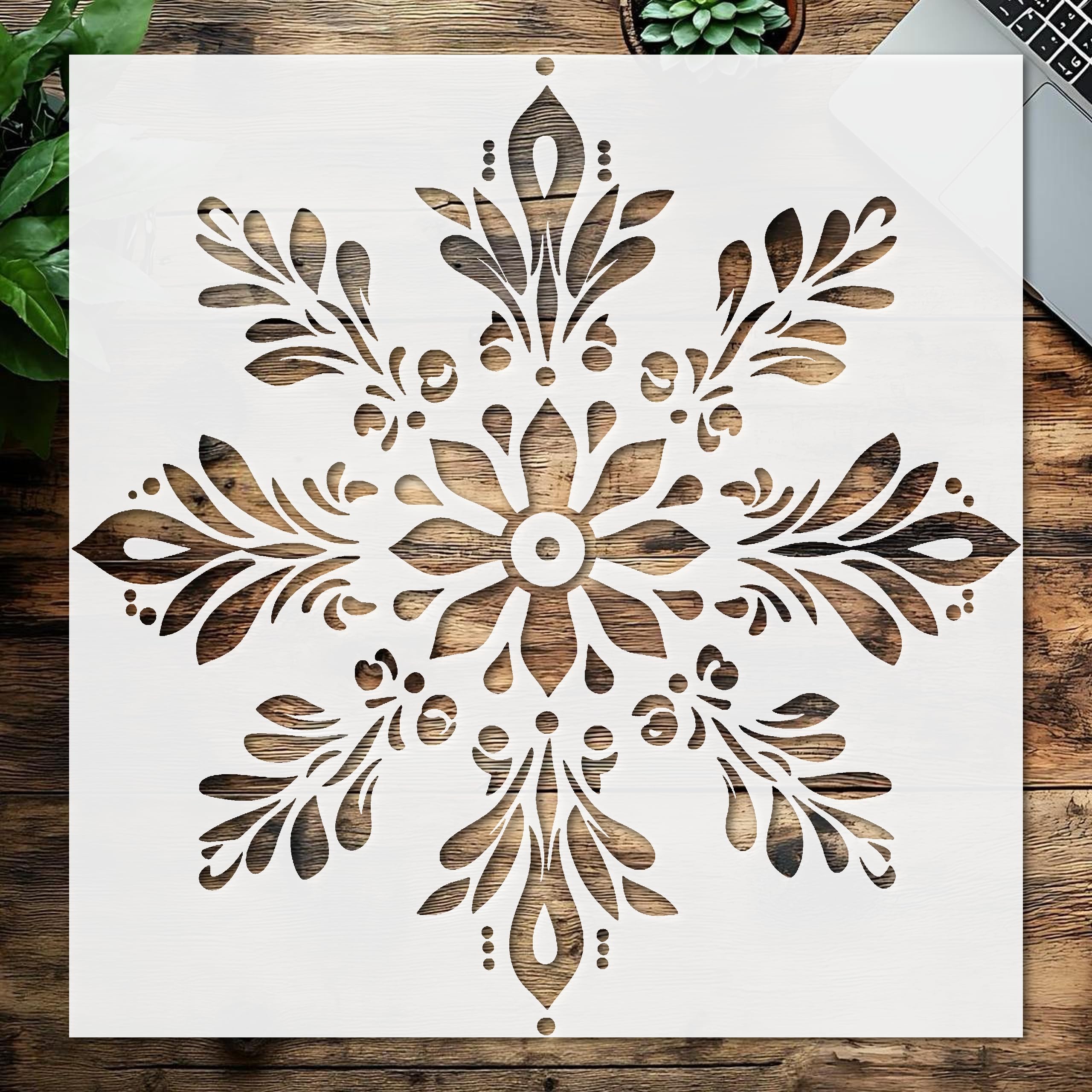 Professional Reusable Snowflake Stencil – Mylar Plastic Template for Painting on Walls, Wood, Fabric, and DIY Crafts stencil for creating beautiful designs on various surfaces. Perfect for painting on wood, fabric, walls, and other materials. Reusable and durable for multiple projects.
