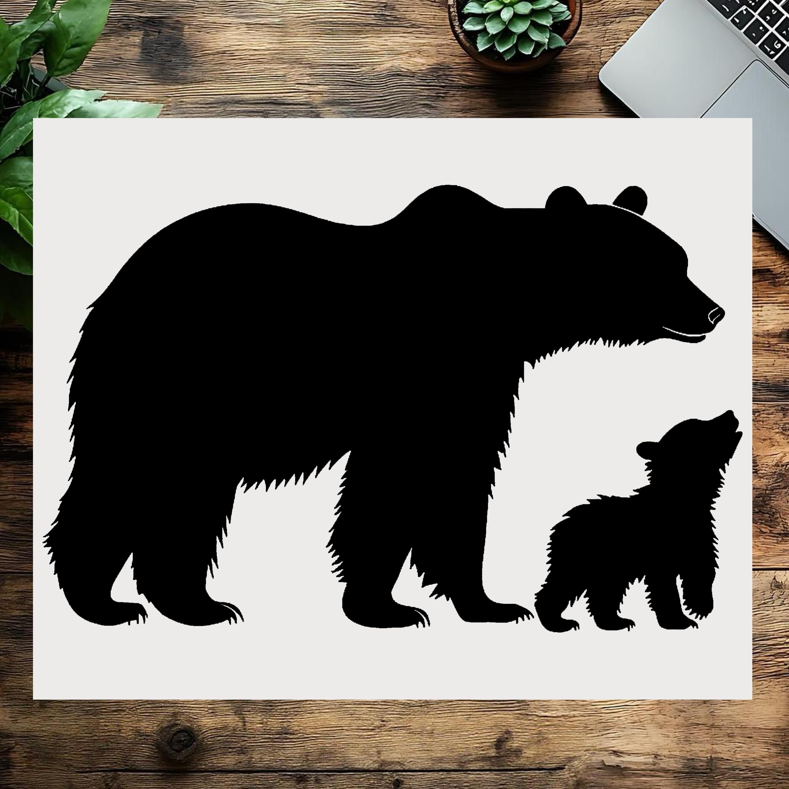 SILHOUETTE DESIGN: This stencil features a beautifully crafted silhouette of a mother bear and her cub, perfect for adding a touch of nature to your art projects.