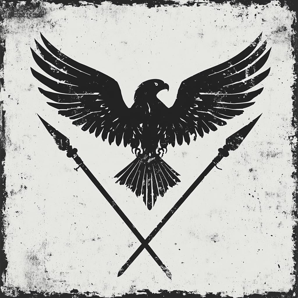 • Bold Roman Eagle Silhouette: Features a majestic imperial eagle holding two spears, inspired by ancient Roman symbols.