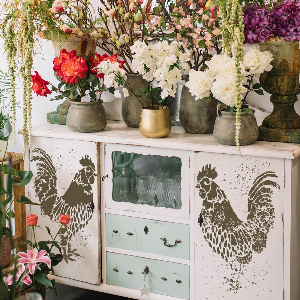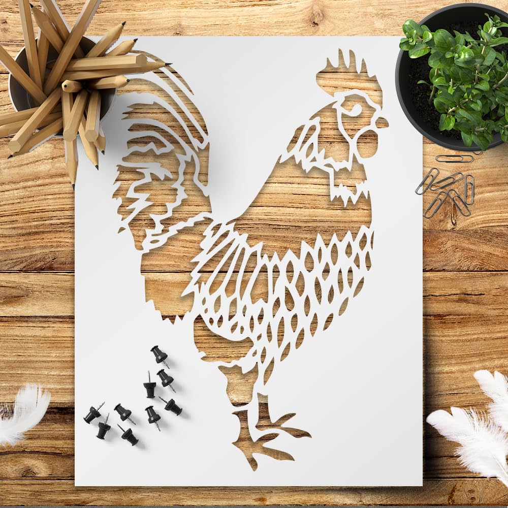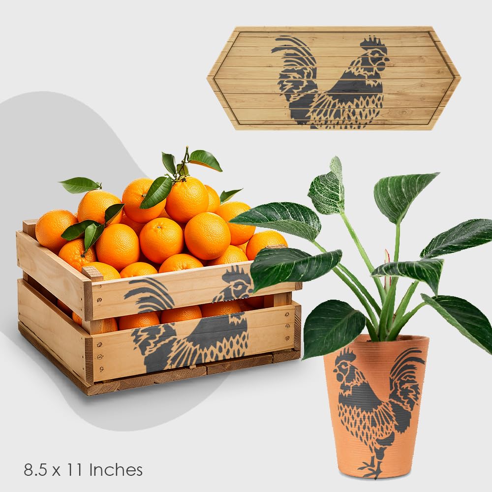 Professional Rooster Stencil Template for Painting – Reusable Farm Country Bird Design, , Versatile DIY Arts and Crafts Tool on Walls, Wood, Glass stencil for creating beautiful designs on various surfaces. Perfect for painting on wood, fabric, walls, and other materials. Reusable and durable for multiple projects.