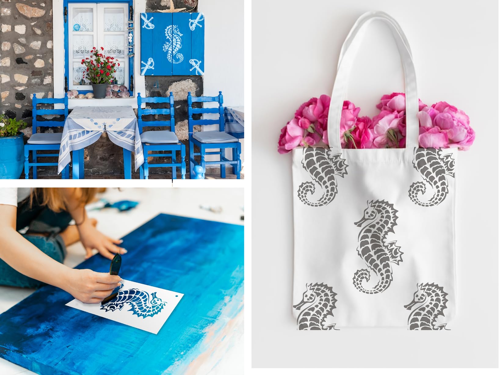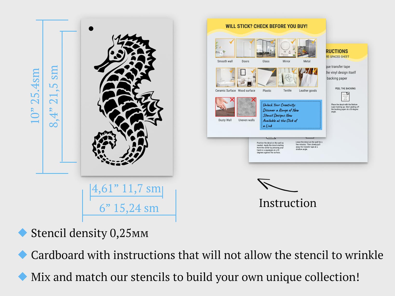 Professional Seahorse Stencil Template for Walls and Crafts – Reusable Stencils for Painting stencil for creating beautiful designs on various surfaces. Perfect for painting on wood, fabric, walls, and other materials. Reusable and durable for multiple projects.