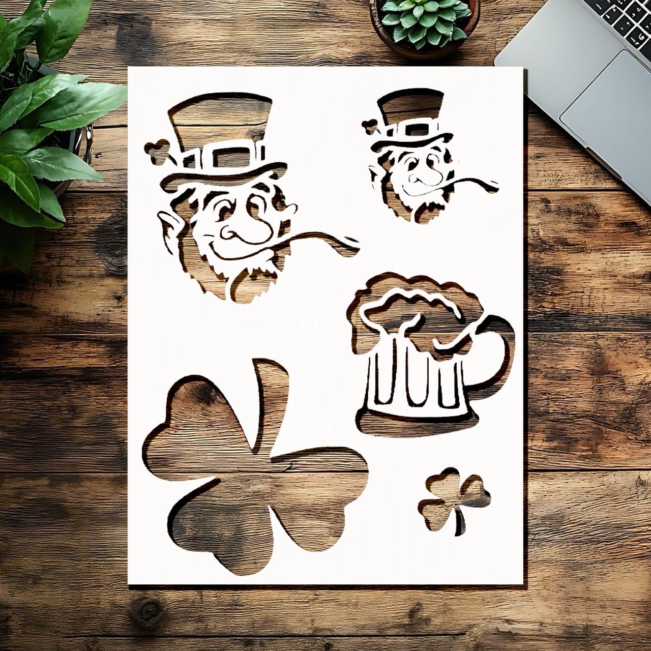 Professional Shamrock & St. Patrick’s Day Leprechaun Beer Stencil – Reusable Plastic Template for Painting, Drawing, Holiday Crafts, and Party DIY Projects stencil for creating beautiful designs on various surfaces. Perfect for painting on wood, fabric, walls, and other materials. Reusable and durable for multiple projects.