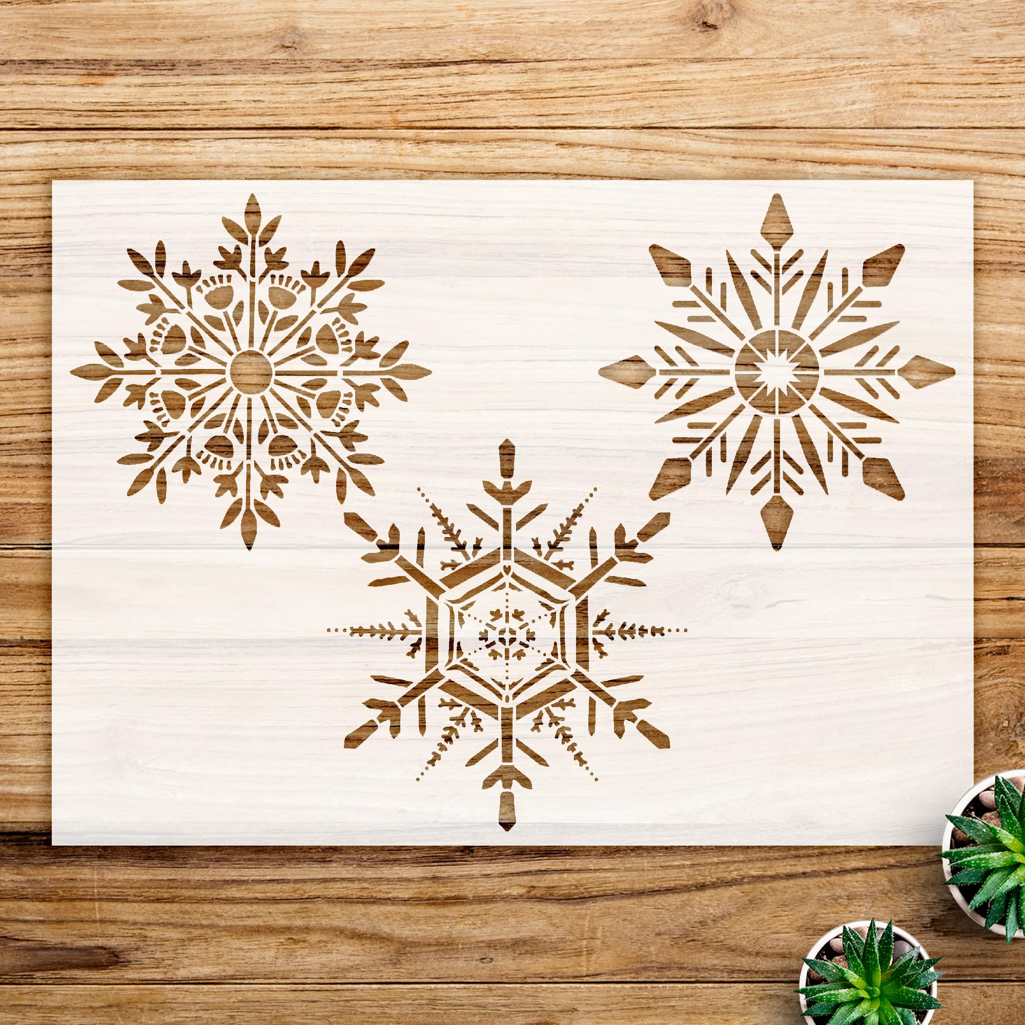 Available in multiple sizes to suit various projects, this stencil is ideal for DIY enthusiasts, home decorators, and anyone looking to add a touch of winter magic to their creations.