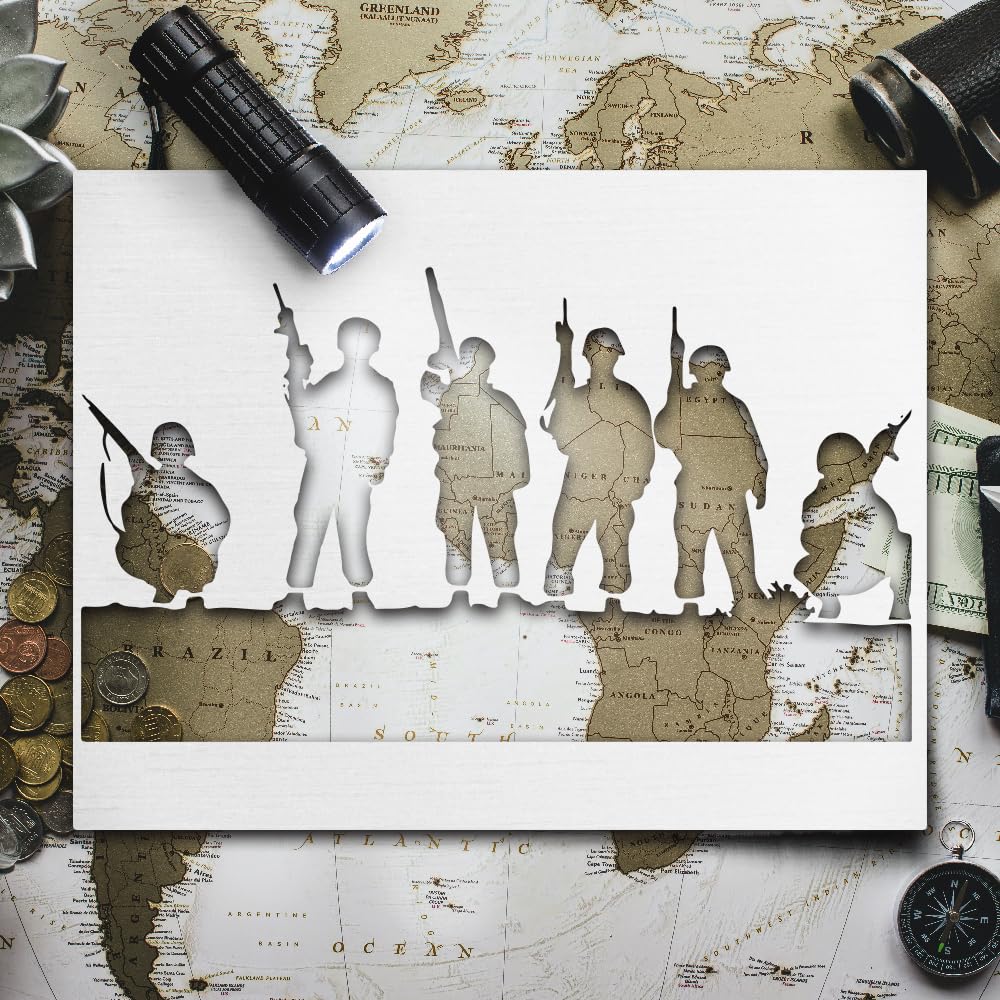 Professional Soldier Men Rifles Stencil Template – Reusable for Painting on Walls, Wood, DIY Arts and Crafts Projects – LIONX stencil for creating beautiful designs on various surfaces. Perfect for painting on wood, fabric, walls, and other materials. Reusable and durable for multiple projects.