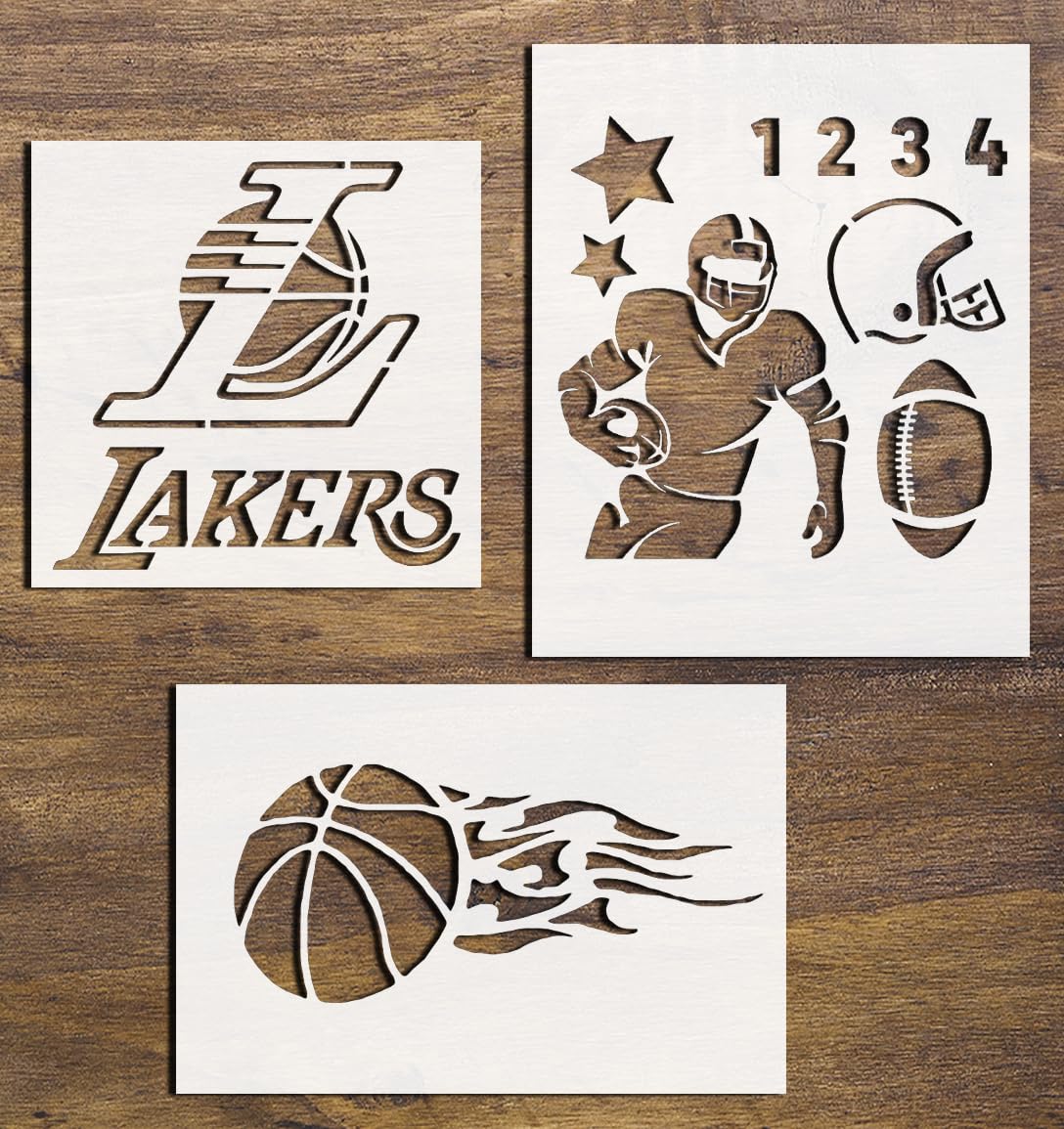 Professional Sports Stencil Bundle – Basketball & Rugby Stencils for Painting on Wood, Walls, Fabric & Canvas – Reusable DIY Templates for Crafts & Home Decor – Sizes to stencil for creating beautiful designs on various surfaces. Perfect for painting on wood, fabric, walls, and other materials. Reusable and durable for multiple projects.