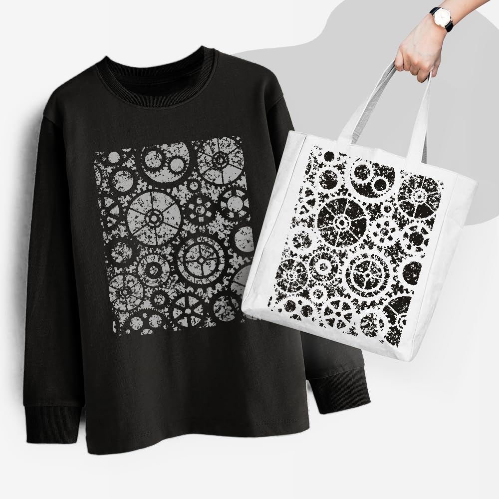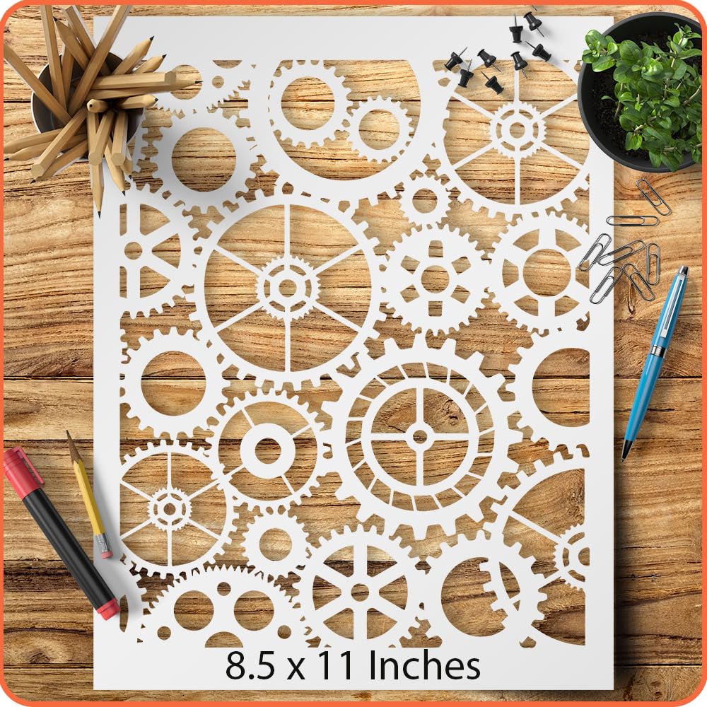 Professional Steampunk Gears Stencil Template – Reusable for Painting on Walls, Wood, DIY Arts and Crafts Projects stencil for creating beautiful designs on various surfaces. Perfect for painting on wood, fabric, walls, and other materials. Reusable and durable for multiple projects.