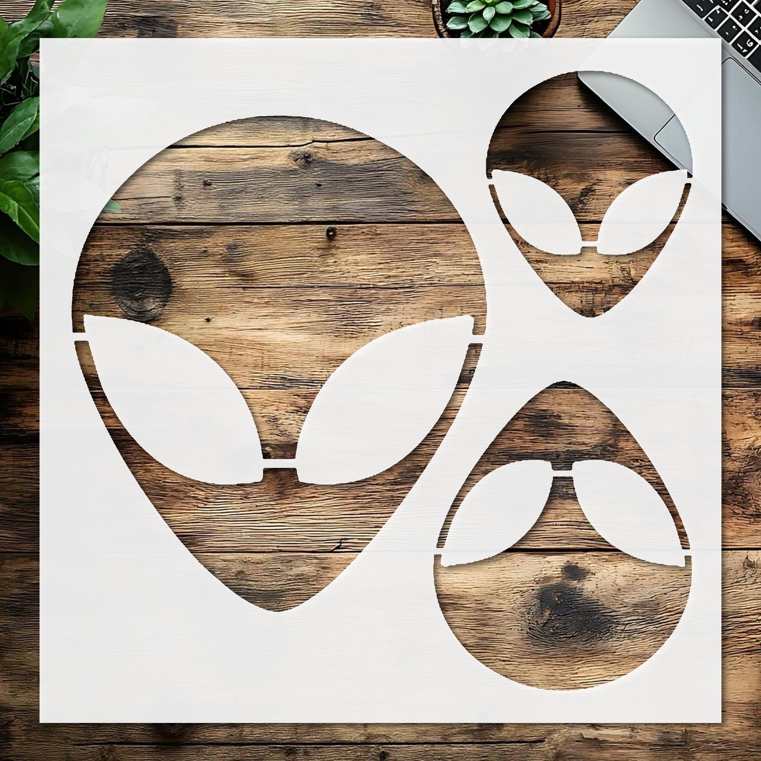 Professional Stencil Alien Head Design, Plastic Reusable, Reusable Plastic, L x W, for DIY Crafts and Home Decor stencil for creating beautiful designs on various surfaces. Perfect for painting on wood, fabric, walls, and other materials. Reusable and durable for multiple projects.