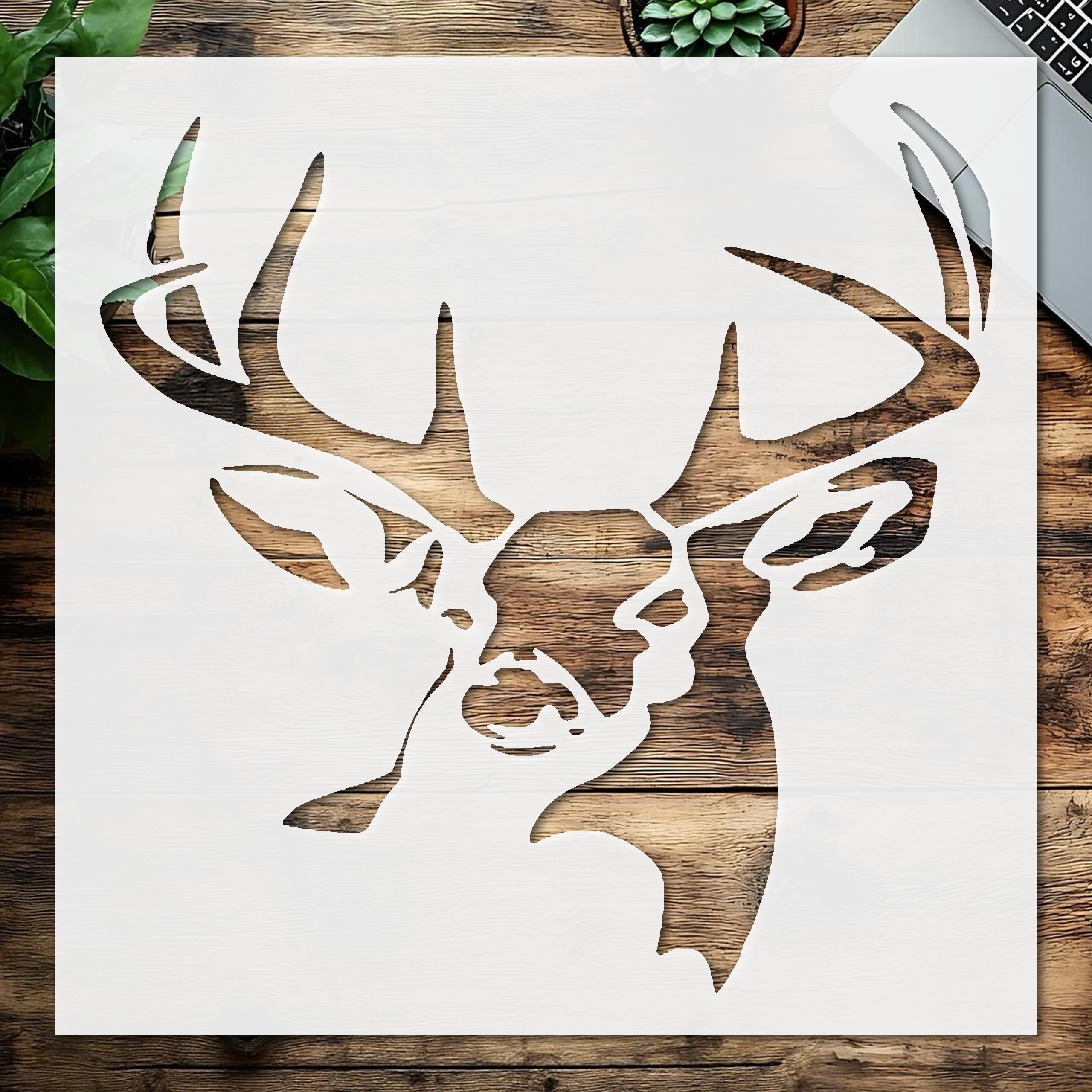 Professional Stencil Big Deer with Horns, Plastic Reusable, Reusable Plastic, L x W, for DIY Crafts and Home Decor stencil for creating beautiful designs on various surfaces. Perfect for painting on wood, fabric, walls, and other materials. Reusable and durable for multiple projects.