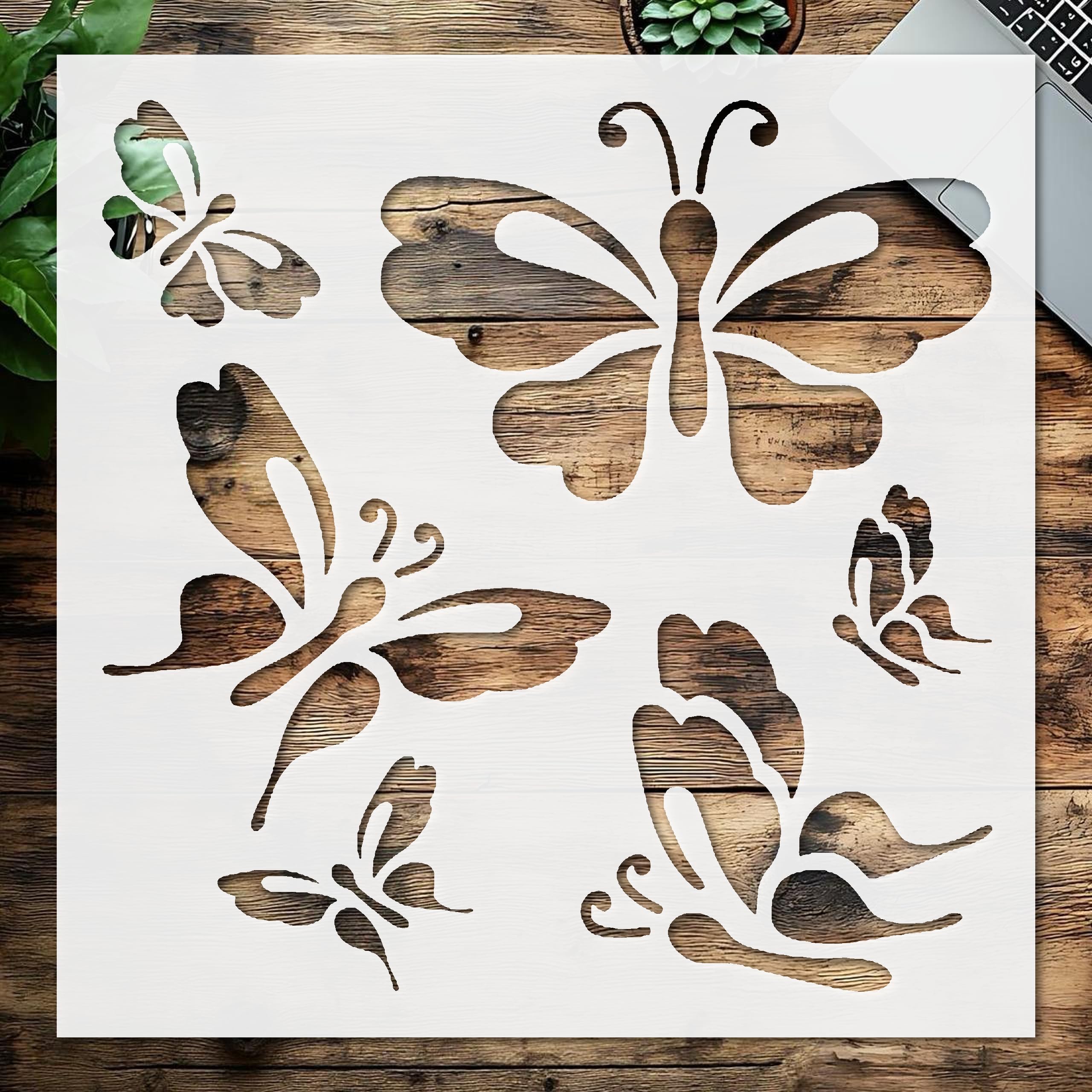 Professional Stencil Butterfly Different Poses, Plastic Reusable, Reusable Plastic, L x W, for DIY Crafts and Home Decor stencil for creating beautiful designs on various surfaces. Perfect for painting on wood, fabric, walls, and other materials. Reusable and durable for multiple projects.