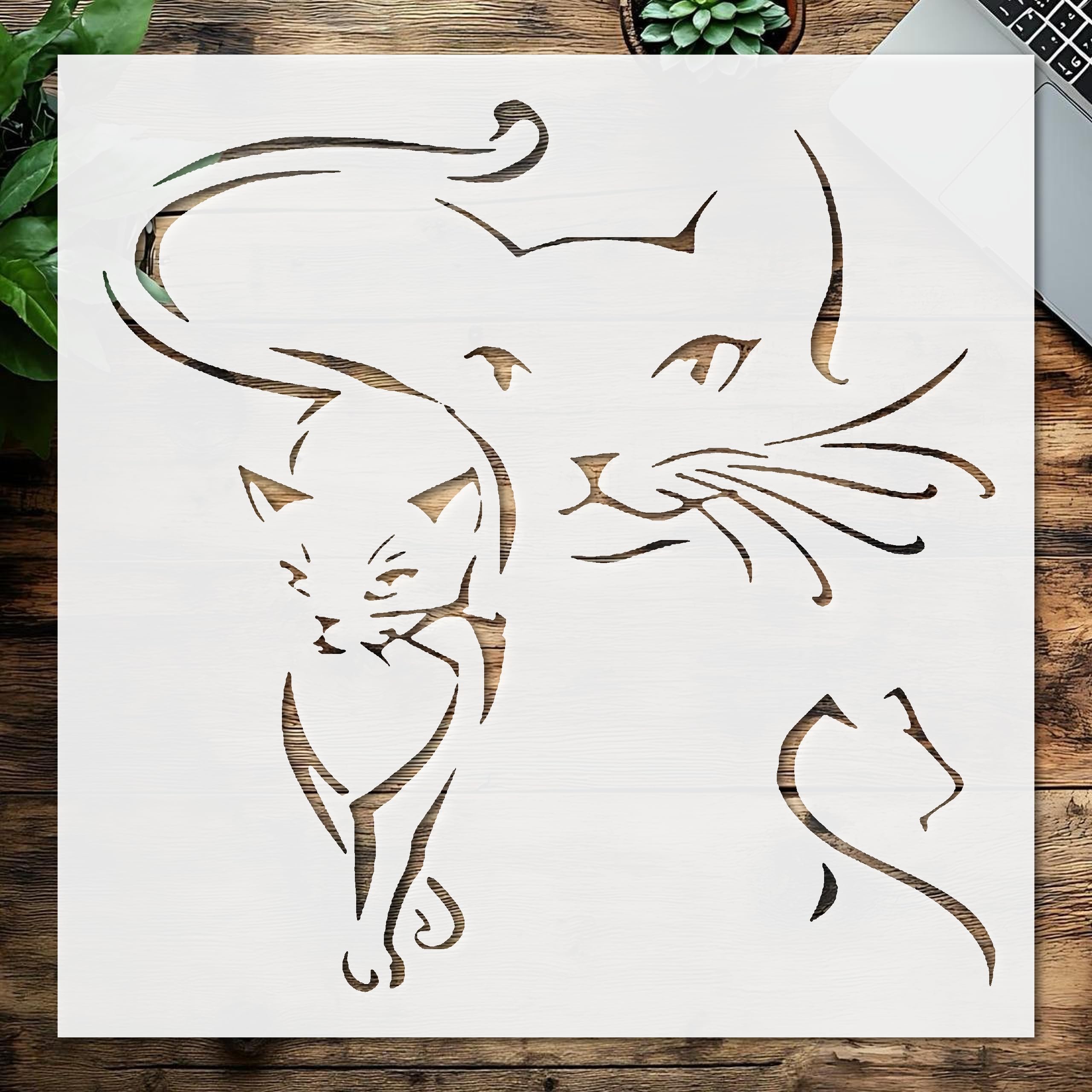 Professional Stencil cat Contour Design, Plastic Reusable, Reusable Plastic, L x W, for DIY Crafts and Home Decor stencil for creating beautiful designs on various surfaces. Perfect for painting on wood, fabric, walls, and other materials. Reusable and durable for multiple projects.