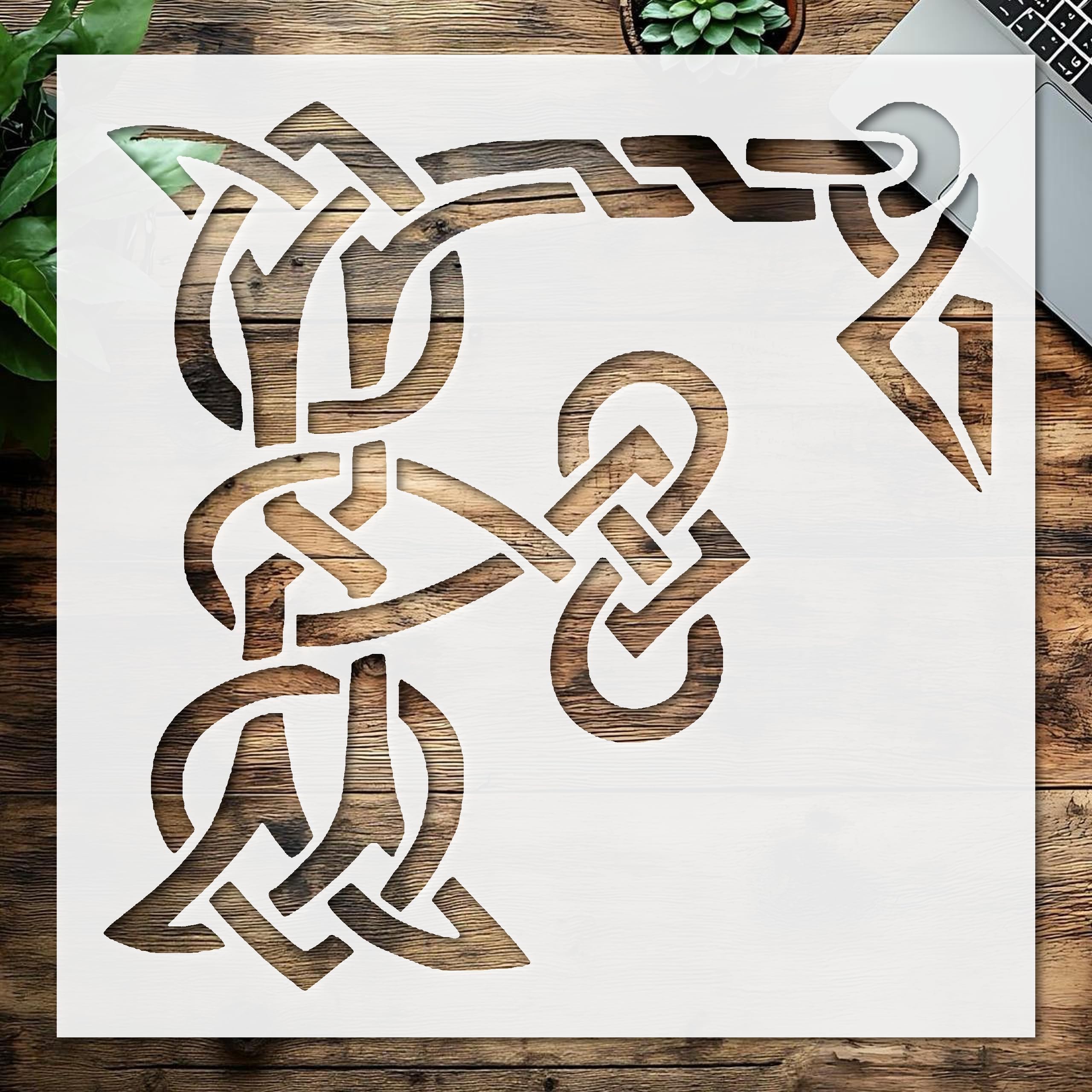Professional Stencil Celtic Initial F Design, Plastic Reusable, Reusable Plastic, L x W, for DIY Crafts and Home Decor stencil for creating beautiful designs on various surfaces. Perfect for painting on wood, fabric, walls, and other materials. Reusable and durable for multiple projects.