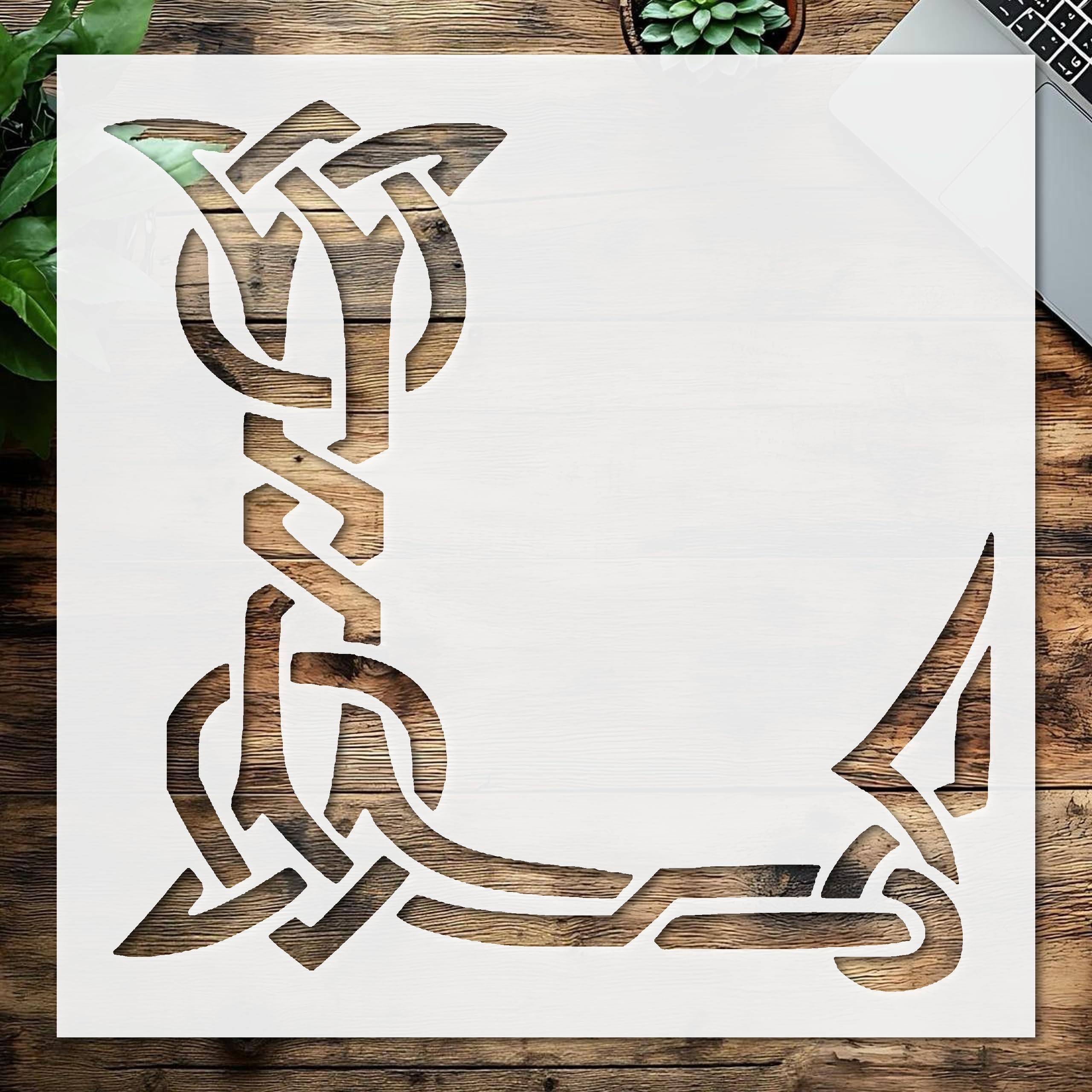 Professional Stencil Celtic Initial L Design, Plastic Reusable, Reusable Plastic, L x W, for DIY Crafts and Home Decor stencil for creating beautiful designs on various surfaces. Perfect for painting on wood, fabric, walls, and other materials. Reusable and durable for multiple projects.