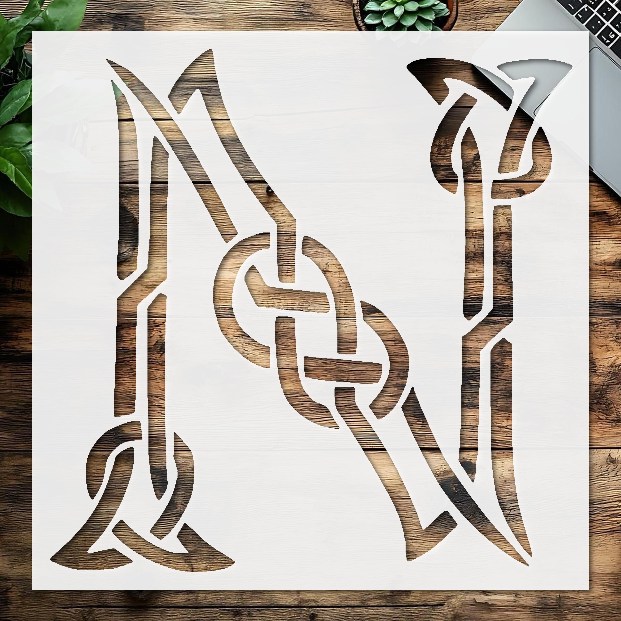 Professional Stencil Celtic Initial N, Plastic Reusable, Reusable Plastic, L x W, for DIY Crafts and Home Decor stencil for creating beautiful designs on various surfaces. Perfect for painting on wood, fabric, walls, and other materials. Reusable and durable for multiple projects.