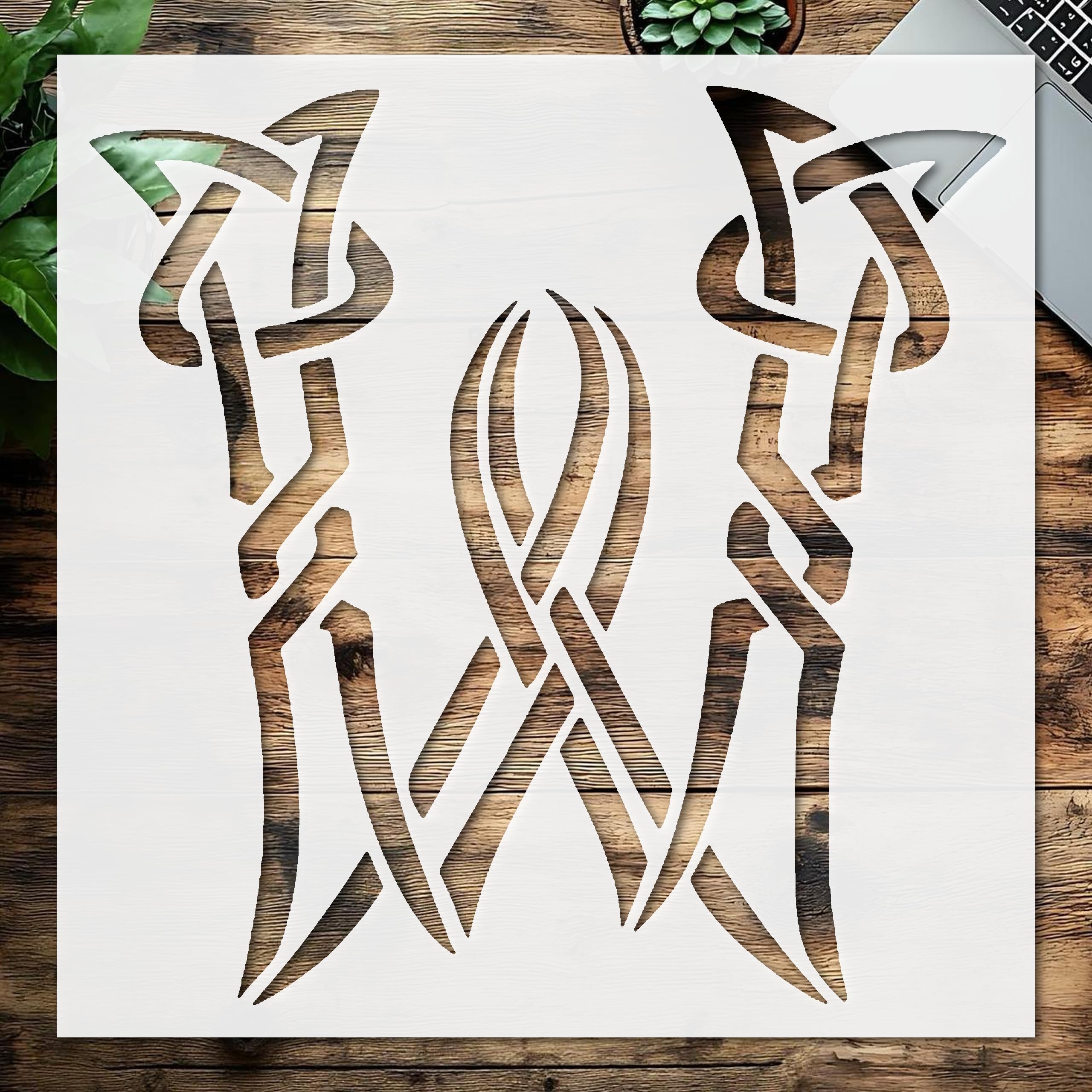 Professional Stencil Celtic Initial W, Plastic Reusable, Reusable Plastic, L x W, for DIY Crafts and Home Decor stencil for creating beautiful designs on various surfaces. Perfect for painting on wood, fabric, walls, and other materials. Reusable and durable for multiple projects.