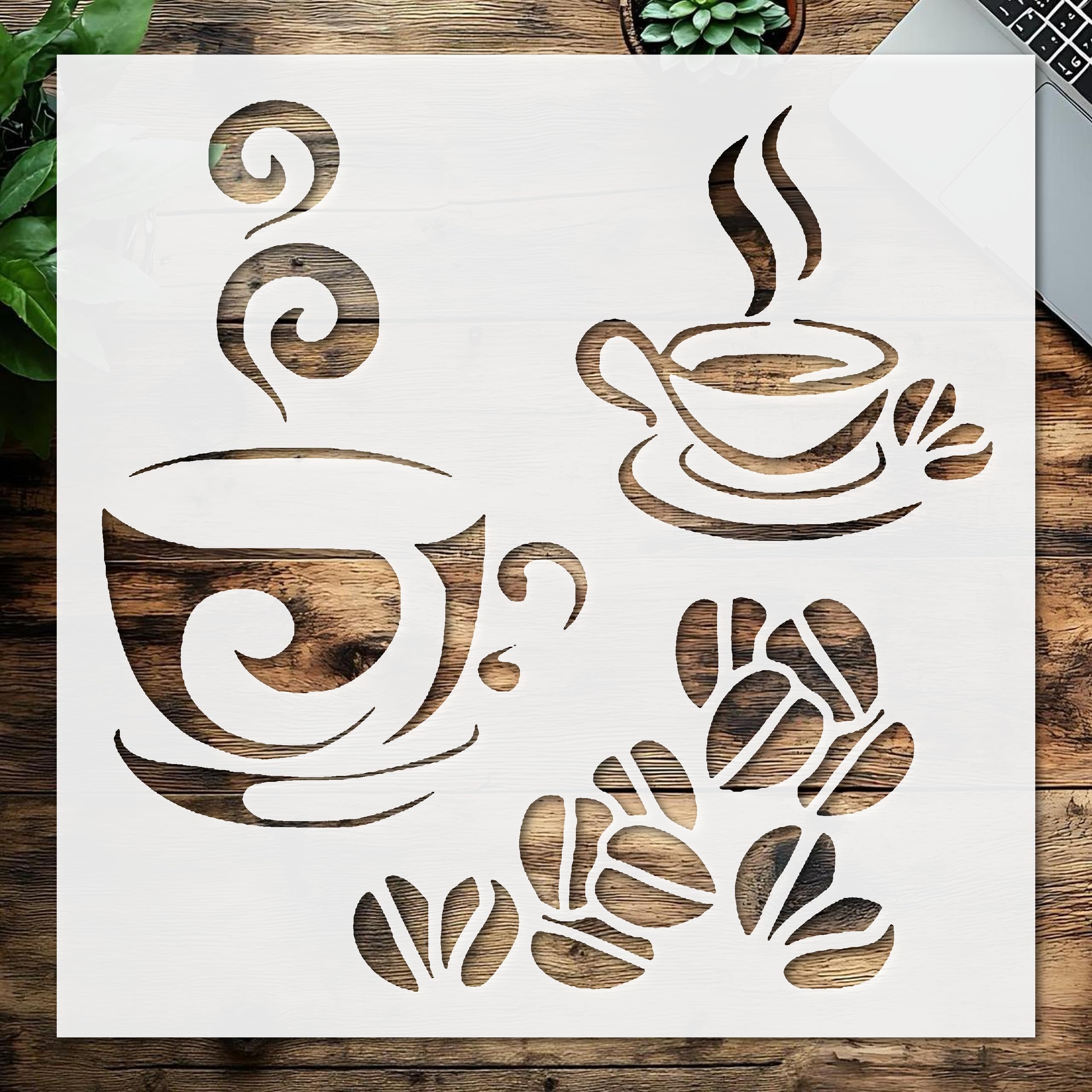 Professional Stencil Coffee, Plastic Reusable, Reusable Plastic, Not specified, for DIY Crafts and Home Decor stencil for creating beautiful designs on various surfaces. Perfect for painting on wood, fabric, walls, and other materials. Reusable and durable for multiple projects.
