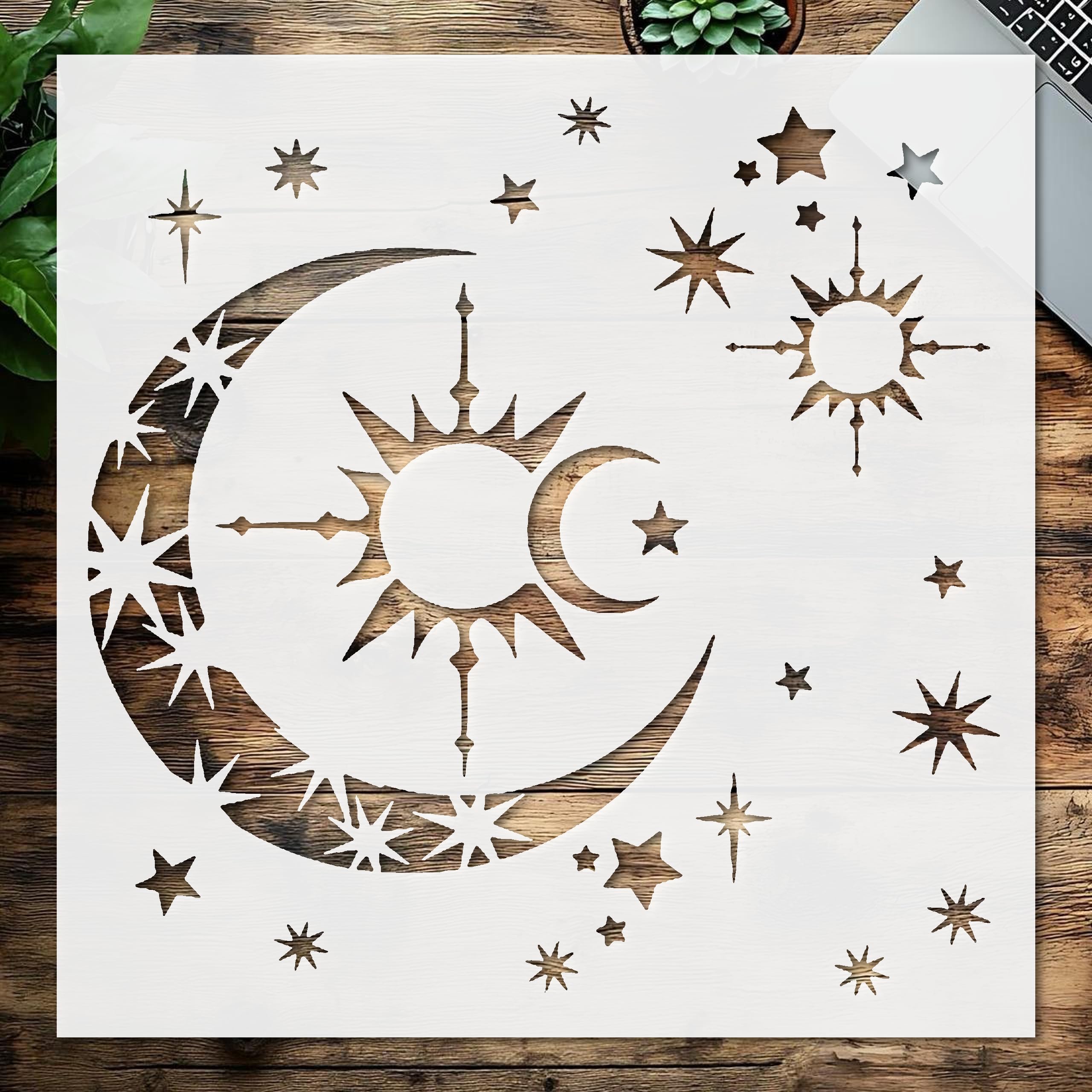 Professional Stencil Different Stars Moon Month Space Starry Sky, Plastic Reusable, Reusable Plastic, L x W, for DIY Crafts and Home Decor stencil for creating beautiful designs on various surfaces. Perfect for painting on wood, fabric, walls, and other materials. Reusable and durable for multiple projects.