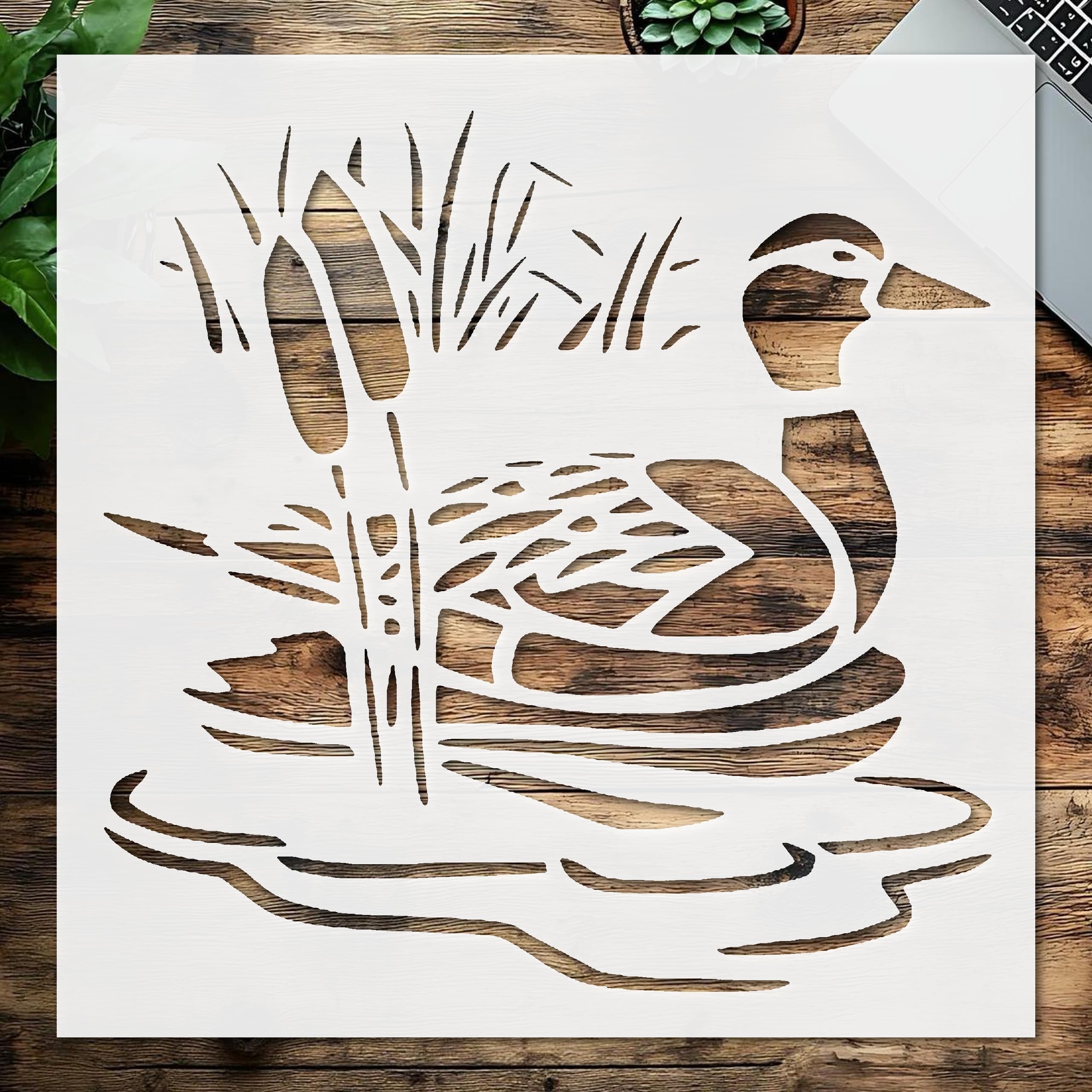 Professional Stencil Duck Lake Reeds, Plastic Reusable, Reusable Plastic, L x W, for DIY Crafts and Home Decor stencil for creating beautiful designs on various surfaces. Perfect for painting on wood, fabric, walls, and other materials. Reusable and durable for multiple projects.