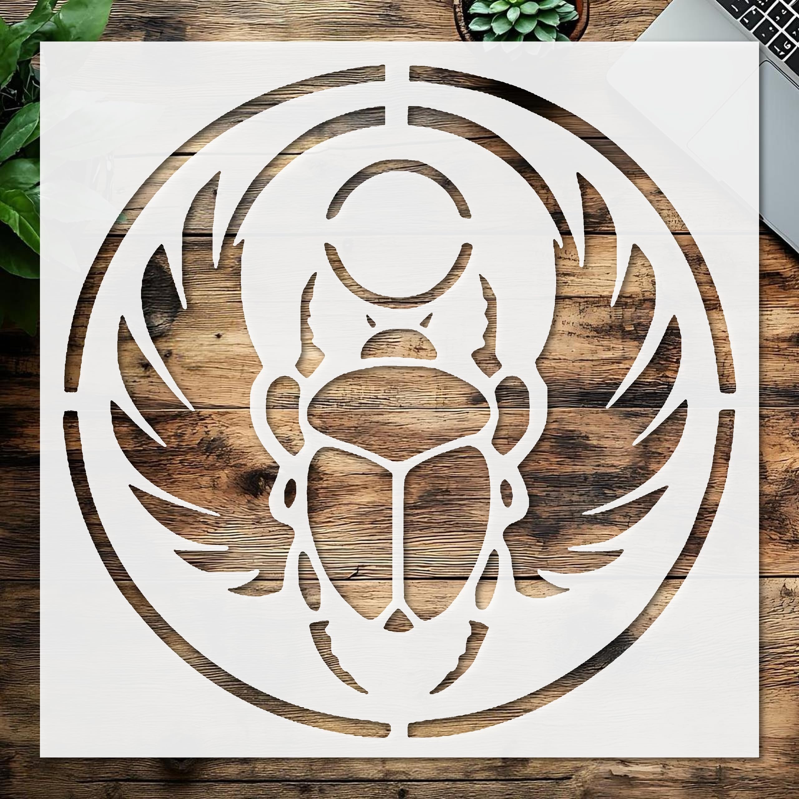 Professional Stencil Egyptian Scarub Design, Plastic Reusable, Reusable Plastic, L x W, for DIY Crafts and Home Decor stencil for creating beautiful designs on various surfaces. Perfect for painting on wood, fabric, walls, and other materials. Reusable and durable for multiple projects.
