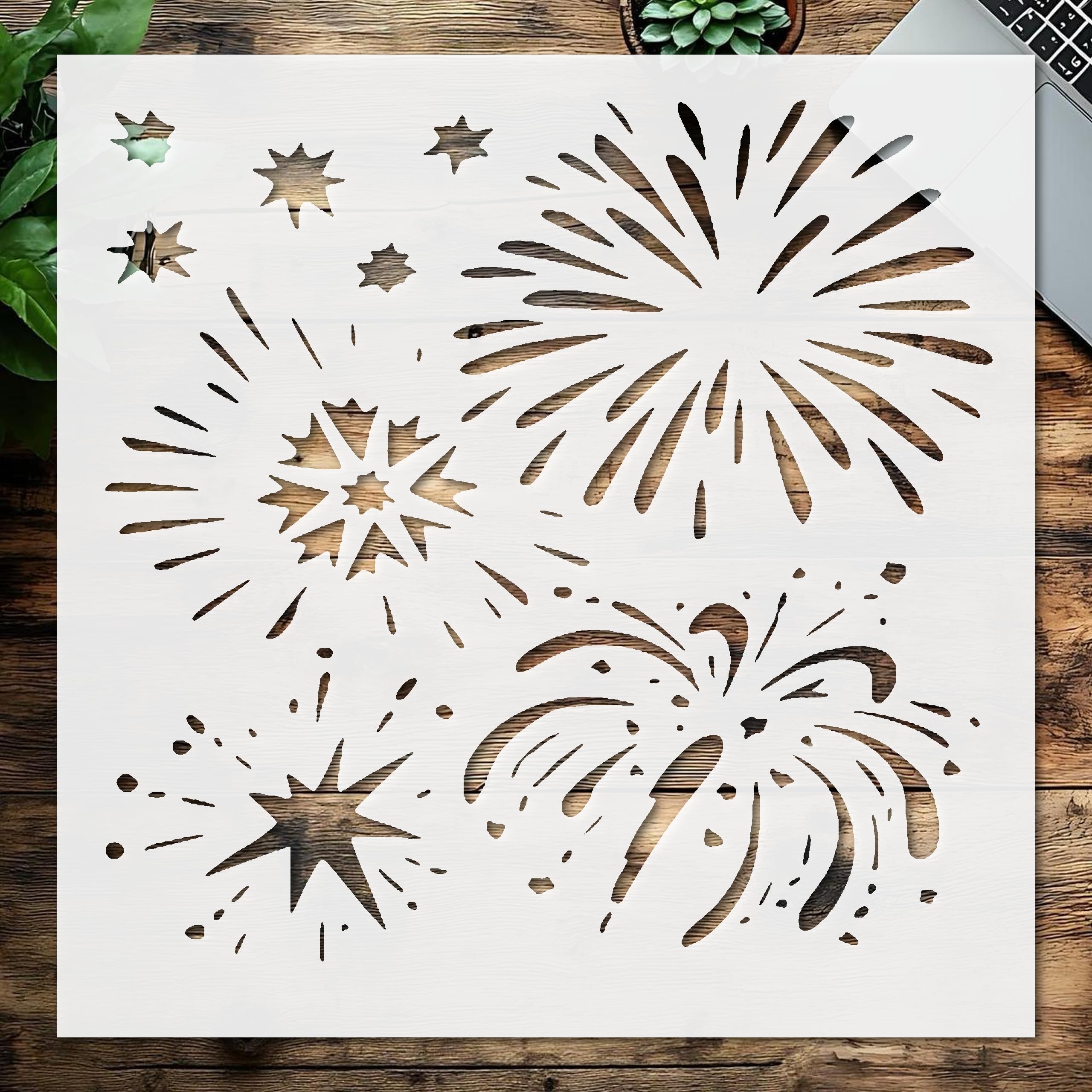 Professional Stencil Fireworks Holiday Stars, Plastic Reusable, Reusable Plastic, x , for DIY Crafts and Home Decor stencil for creating beautiful designs on various surfaces. Perfect for painting on wood, fabric, walls, and other materials. Reusable and durable for multiple projects.