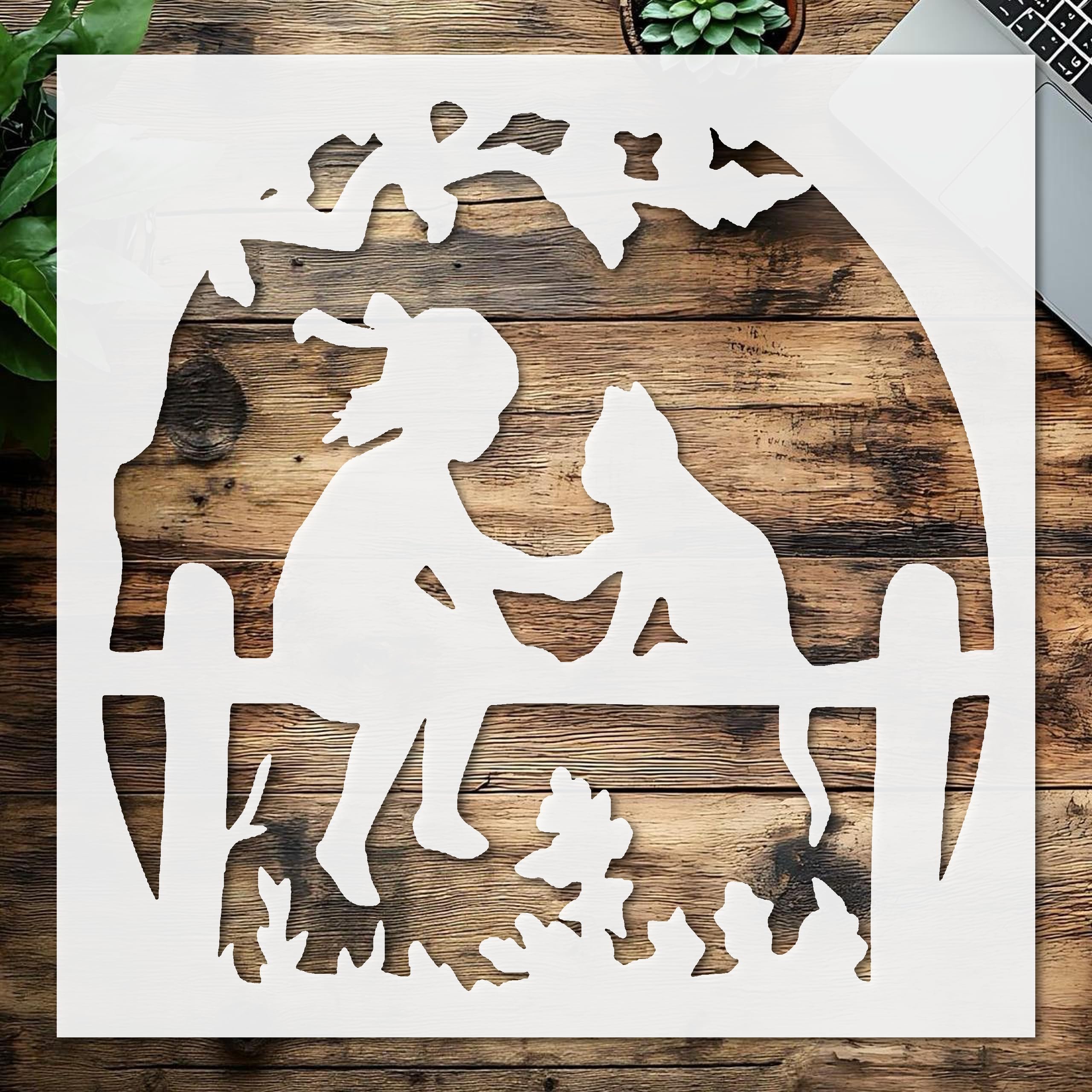 Professional Stencil Girl and Kitten, Plastic Reusable, Reusable Plastic, L x W, for DIY Crafts and Home Decor stencil for creating beautiful designs on various surfaces. Perfect for painting on wood, fabric, walls, and other materials. Reusable and durable for multiple projects.