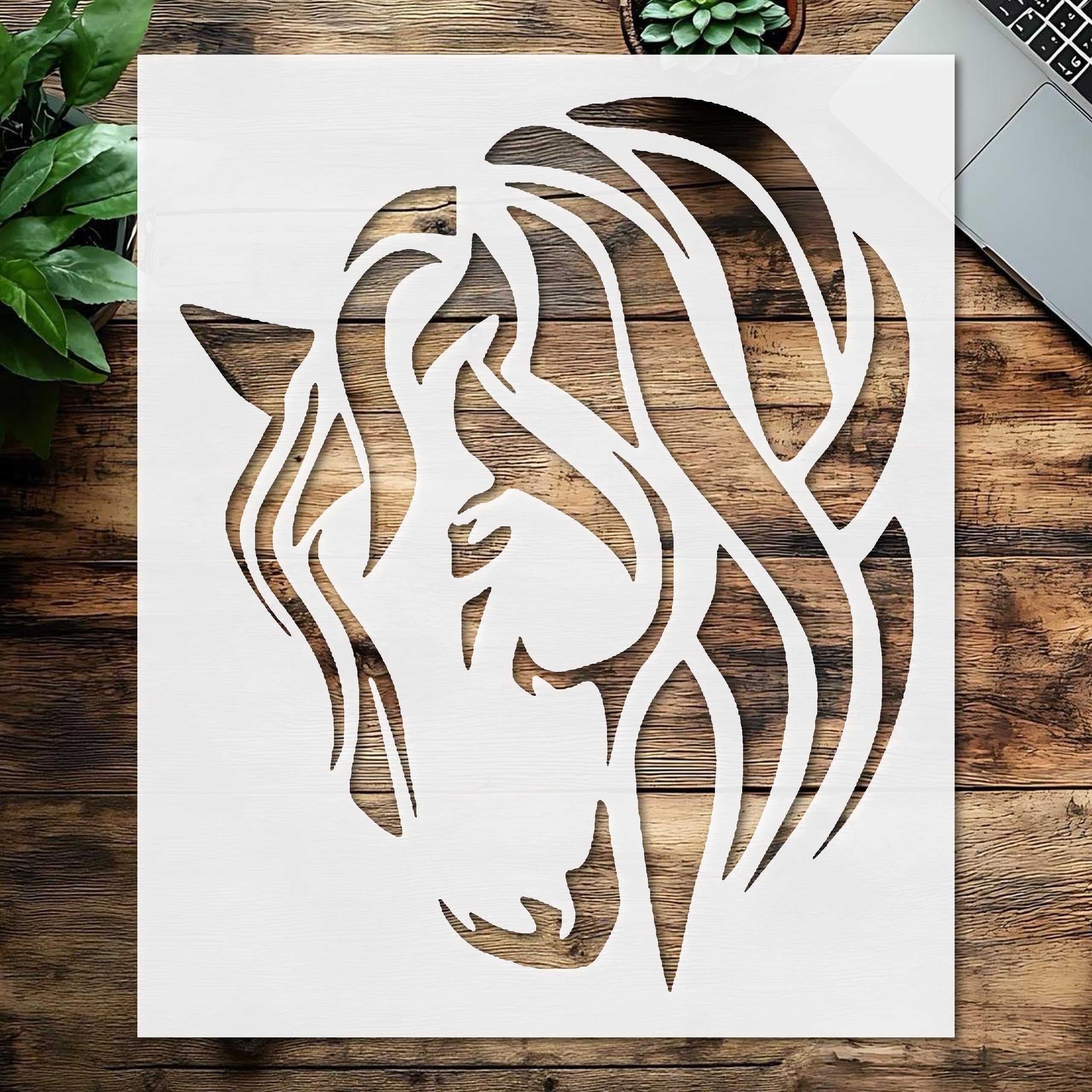 Professional Stencil Horse with a Beautiful Mane, Plastic Reusable, Reusable Plastic, L x W, for DIY Crafts and Home Decor stencil for creating beautiful designs on various surfaces. Perfect for painting on wood, fabric, walls, and other materials. Reusable and durable for multiple projects.