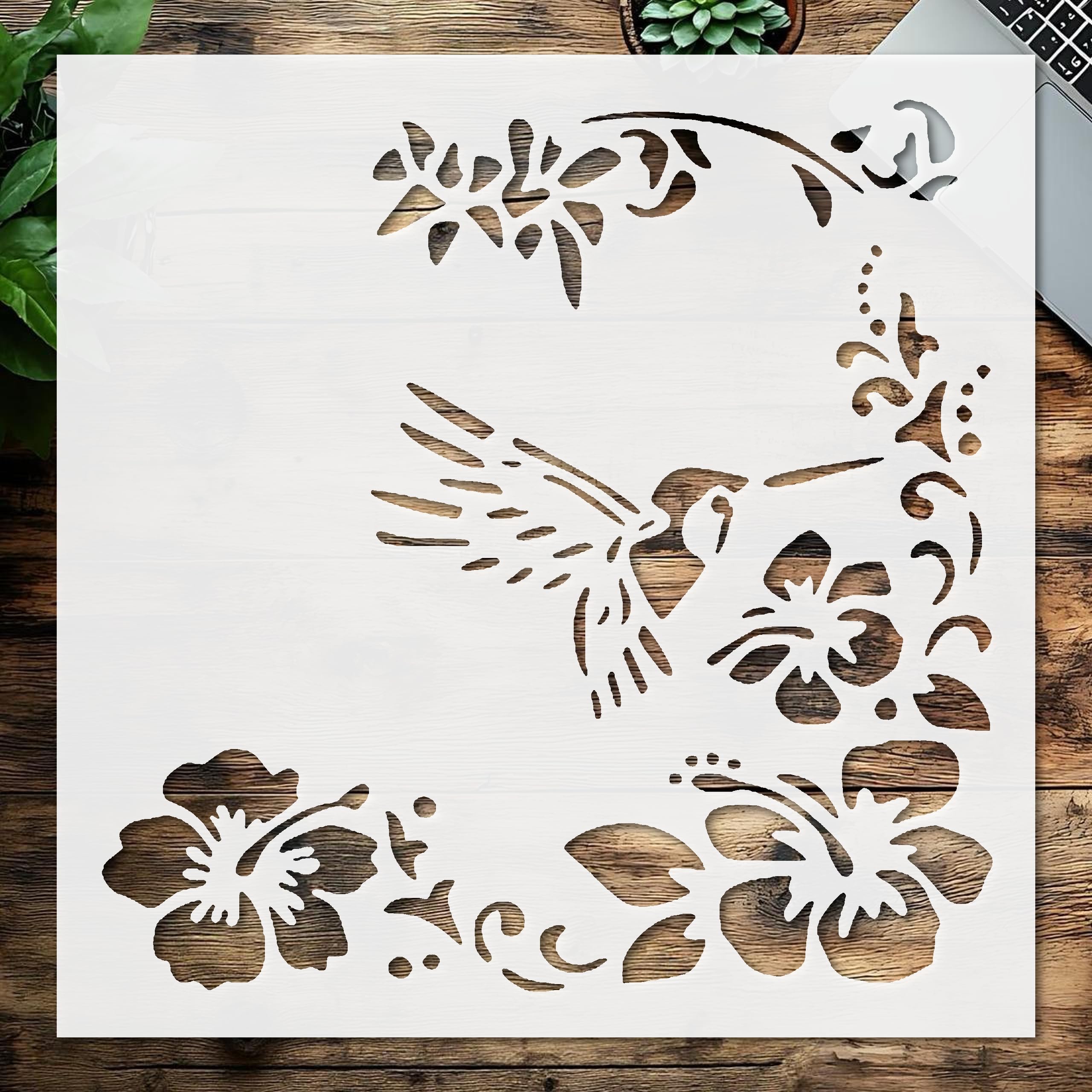 Professional Stencil Hummingbird Bird Design Flowers, Plastic Reusable, Reusable Plastic, L x W, for DIY Crafts and Home Decor stencil for creating beautiful designs on various surfaces. Perfect for painting on wood, fabric, walls, and other materials. Reusable and durable for multiple projects.