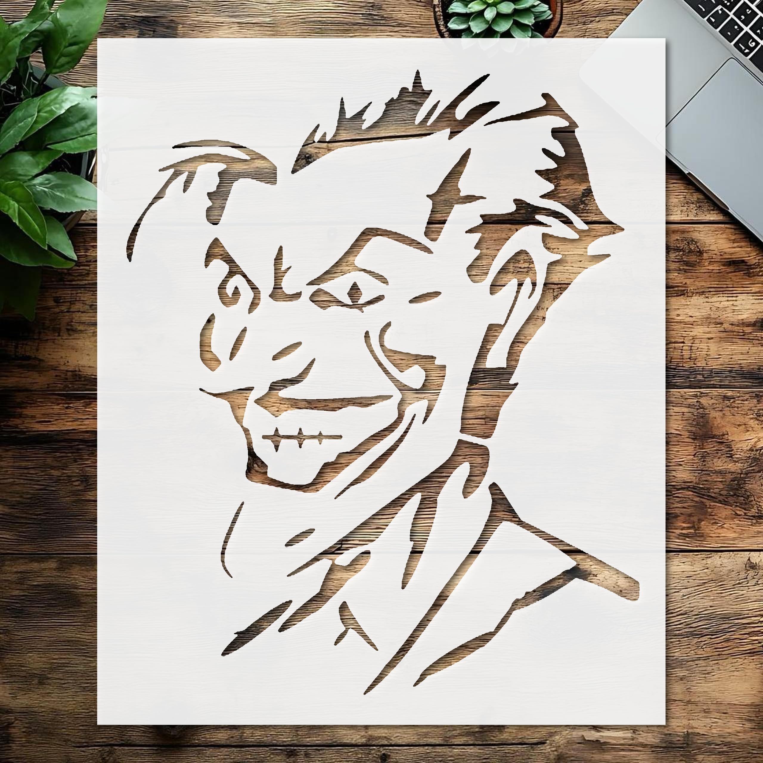 Professional Stencil Joker face, Plastic Reusable, Reusable Plastic, L x W, for DIY Crafts and Home Decor stencil for creating beautiful designs on various surfaces. Perfect for painting on wood, fabric, walls, and other materials. Reusable and durable for multiple projects.