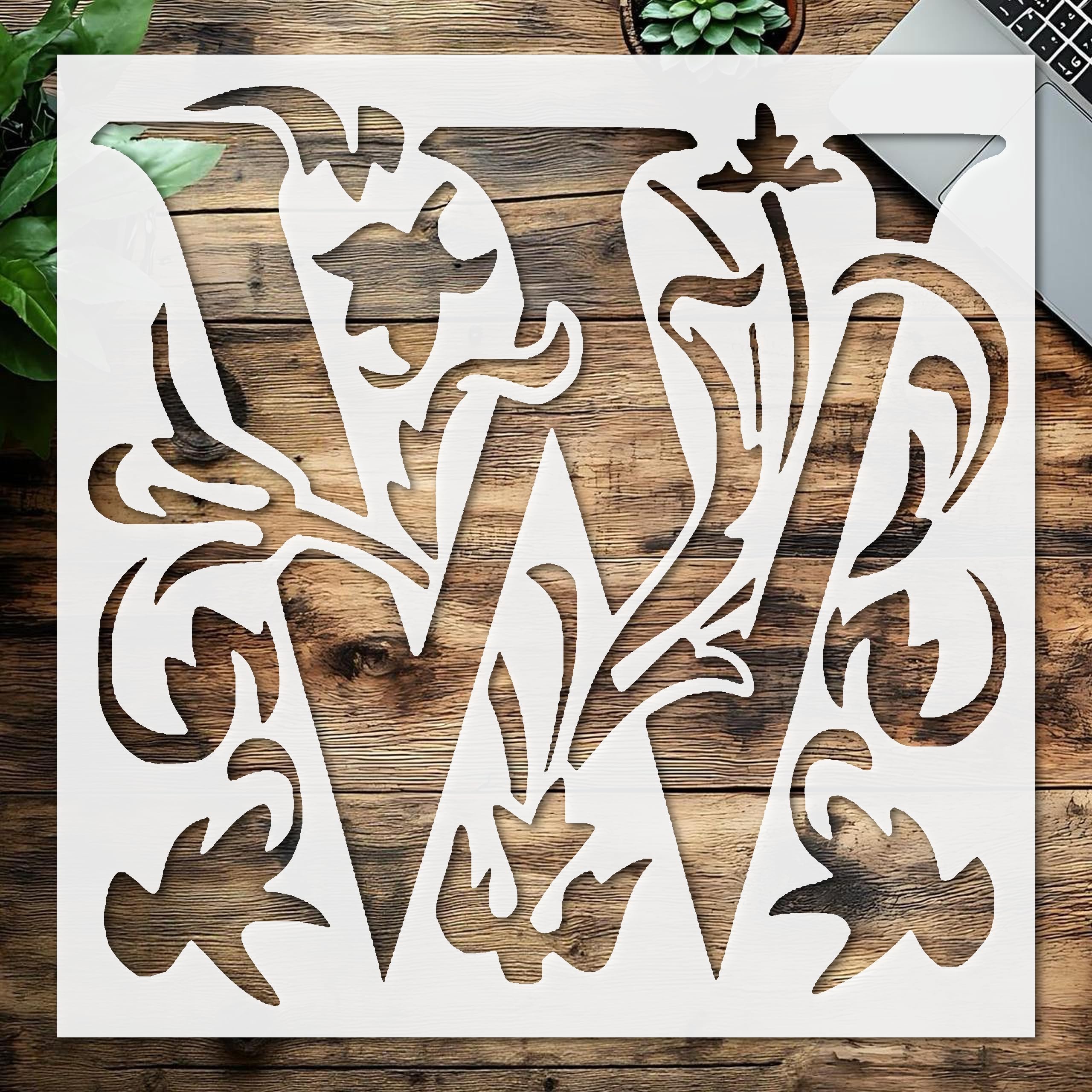 Professional Stencil Large Letter W with Patterns, Plastic Reusable, Reusable Plastic, L x W, for DIY Crafts and Home Decor stencil for creating beautiful designs on various surfaces. Perfect for painting on wood, fabric, walls, and other materials. Reusable and durable for multiple projects.
