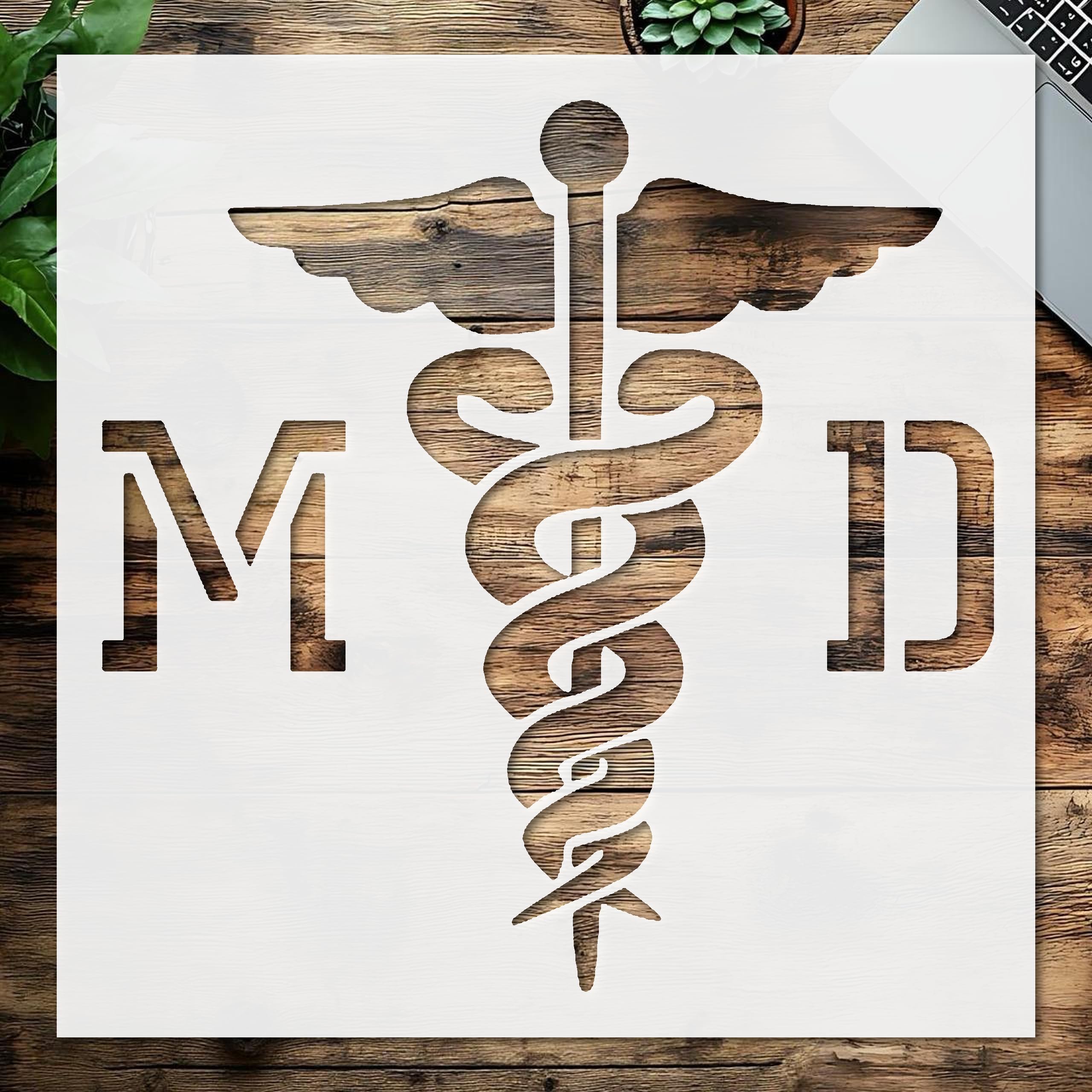 Professional Stencil MD Sign, Plastic Reusable, Reusable Plastic, L x W, for DIY Crafts and Home Decor stencil for creating beautiful designs on various surfaces. Perfect for painting on wood, fabric, walls, and other materials. Reusable and durable for multiple projects.