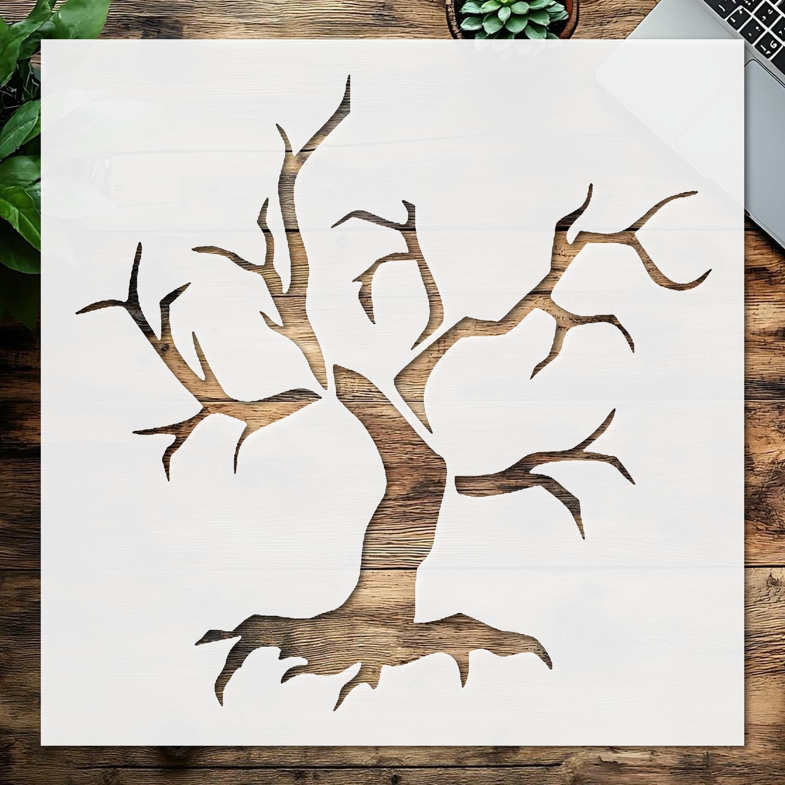 Professional Stencil Old Dead Tree Without Leaves, Plastic Reusable, Reusable Plastic, L x W, for DIY Crafts and Home Decor stencil for creating beautiful designs on various surfaces. Perfect for painting on wood, fabric, walls, and other materials. Reusable and durable for multiple projects.