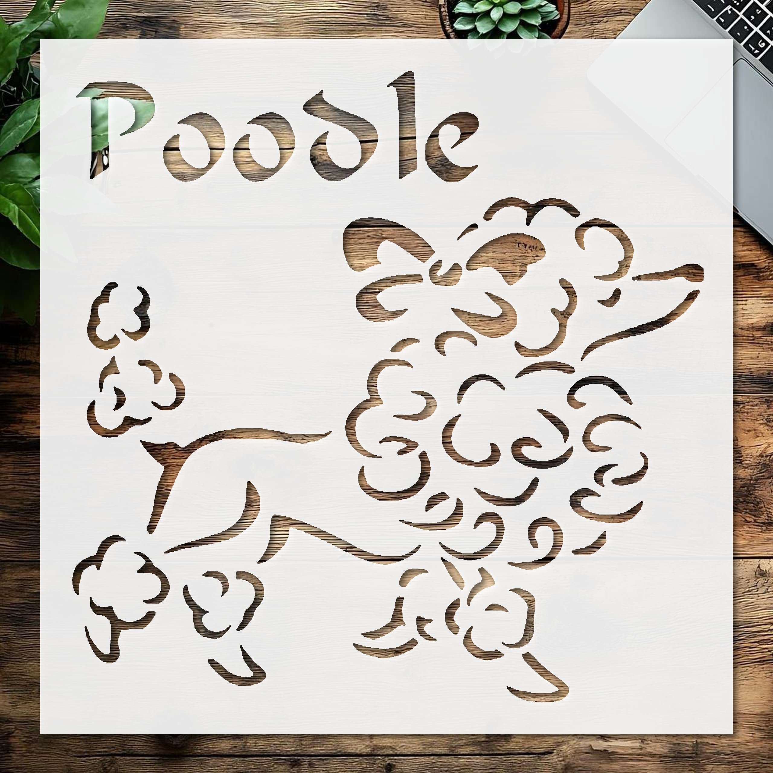 Professional Stencil Poodle Dog Sign, Plastic Reusable, Reusable Plastic, L x W, for DIY Crafts and Home Decor stencil for creating beautiful designs on various surfaces. Perfect for painting on wood, fabric, walls, and other materials. Reusable and durable for multiple projects.