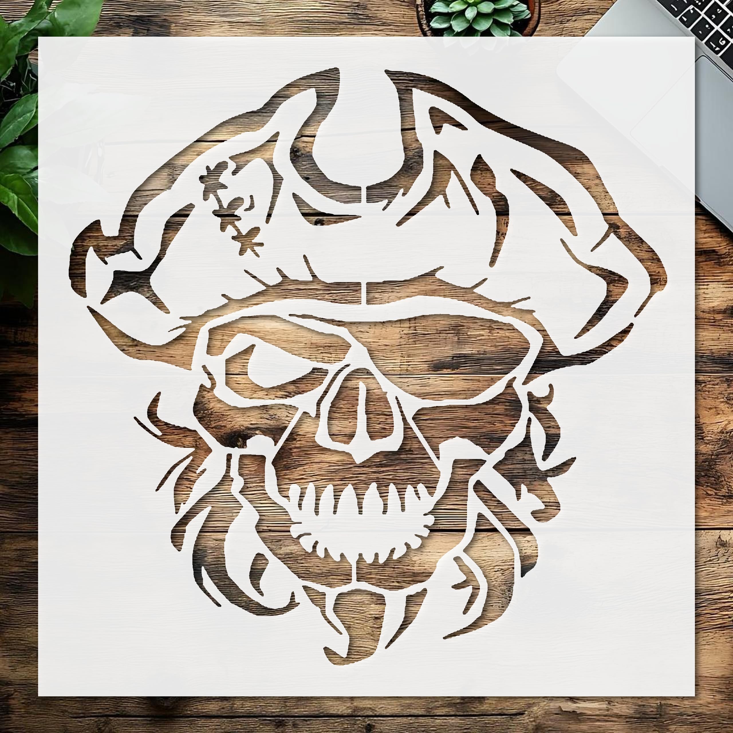 Professional Stencil Skull Pirate, Plastic Reusable, Reusable Plastic, L x W, for DIY Crafts and Home Decor stencil for creating beautiful designs on various surfaces. Perfect for painting on wood, fabric, walls, and other materials. Reusable and durable for multiple projects.