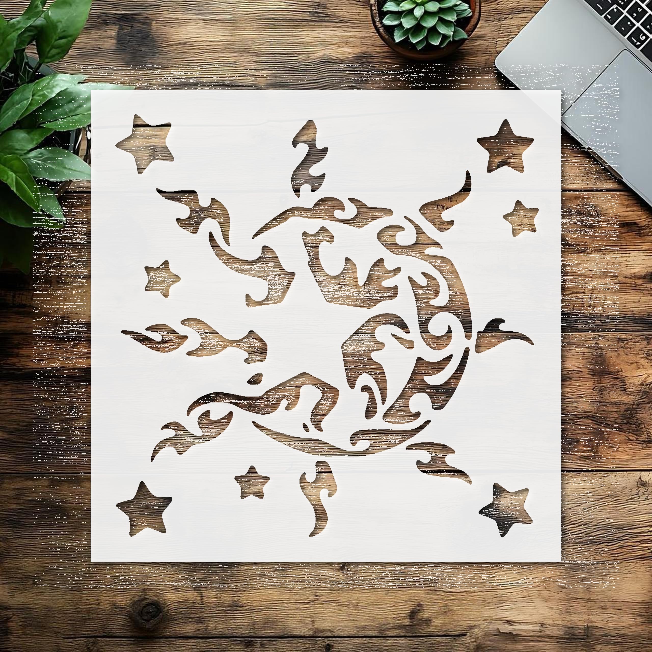 Professional Stencil Sun Moon Stars Abstract Pattern, Plastic Reusable, Reusable Plastic, L x W, for DIY Crafts and Home Decor stencil for creating beautiful designs on various surfaces. Perfect for painting on wood, fabric, walls, and other materials. Reusable and durable for multiple projects.