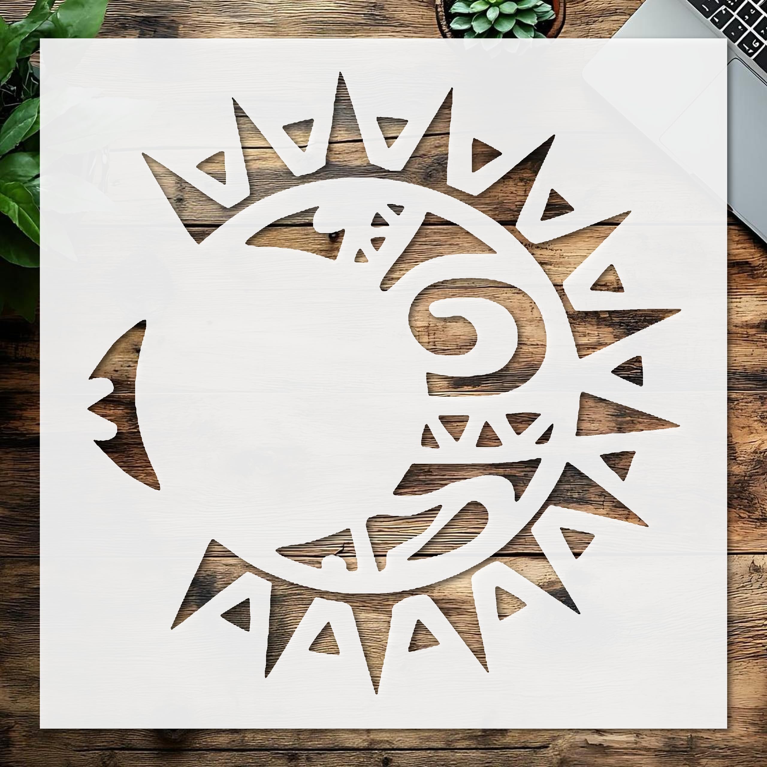 Professional Stencil Totem Moon Sun Pattern, Plastic Reusable, Reusable Plastic, L x W, for DIY Crafts and Home Decor stencil for creating beautiful designs on various surfaces. Perfect for painting on wood, fabric, walls, and other materials. Reusable and durable for multiple projects.