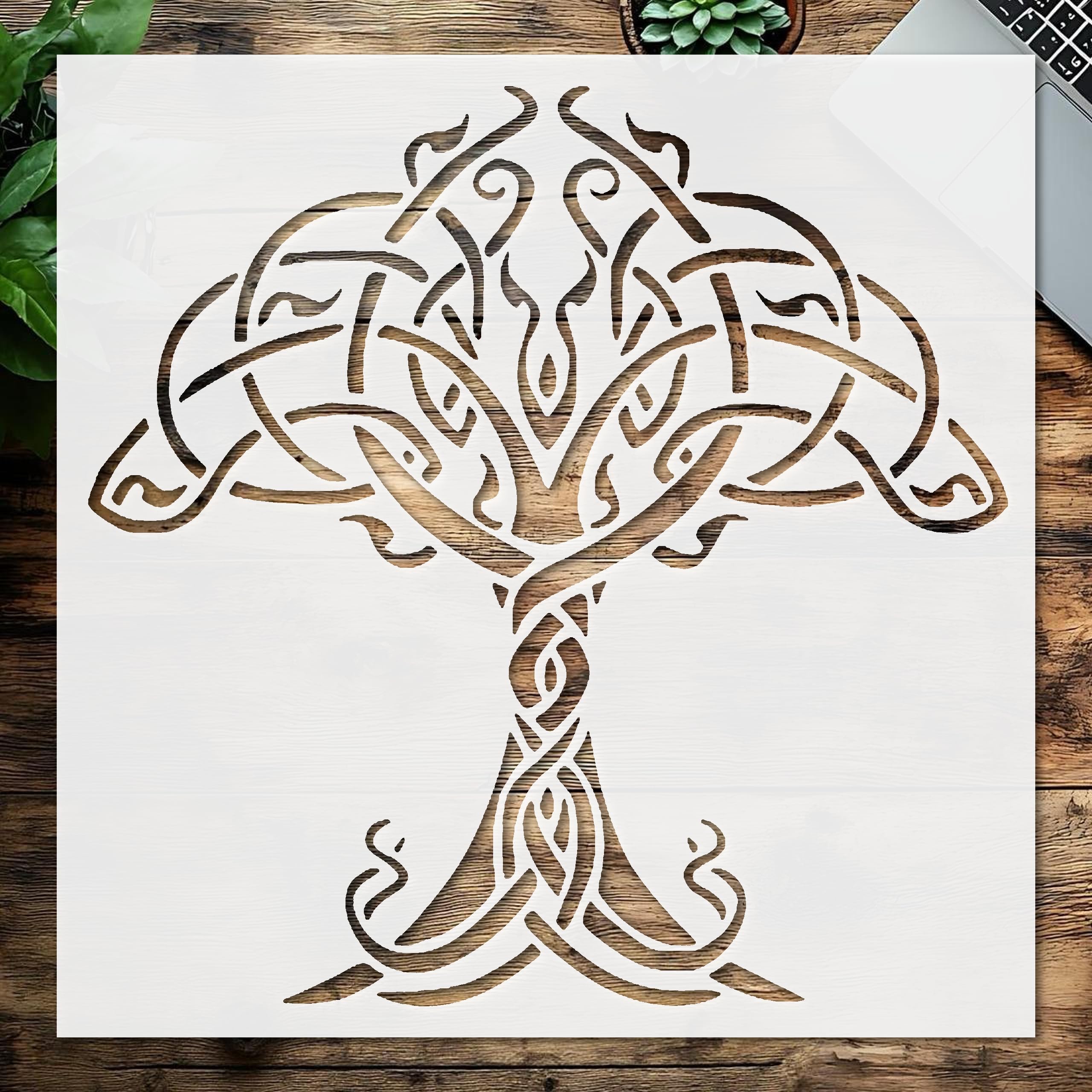 Professional Stencil Tree of Life Celtic Pattern, Plastic Reusable, Reusable Plastic, L x W, for DIY Crafts and Home Decor stencil for creating beautiful designs on various surfaces. Perfect for painting on wood, fabric, walls, and other materials. Reusable and durable for multiple projects.